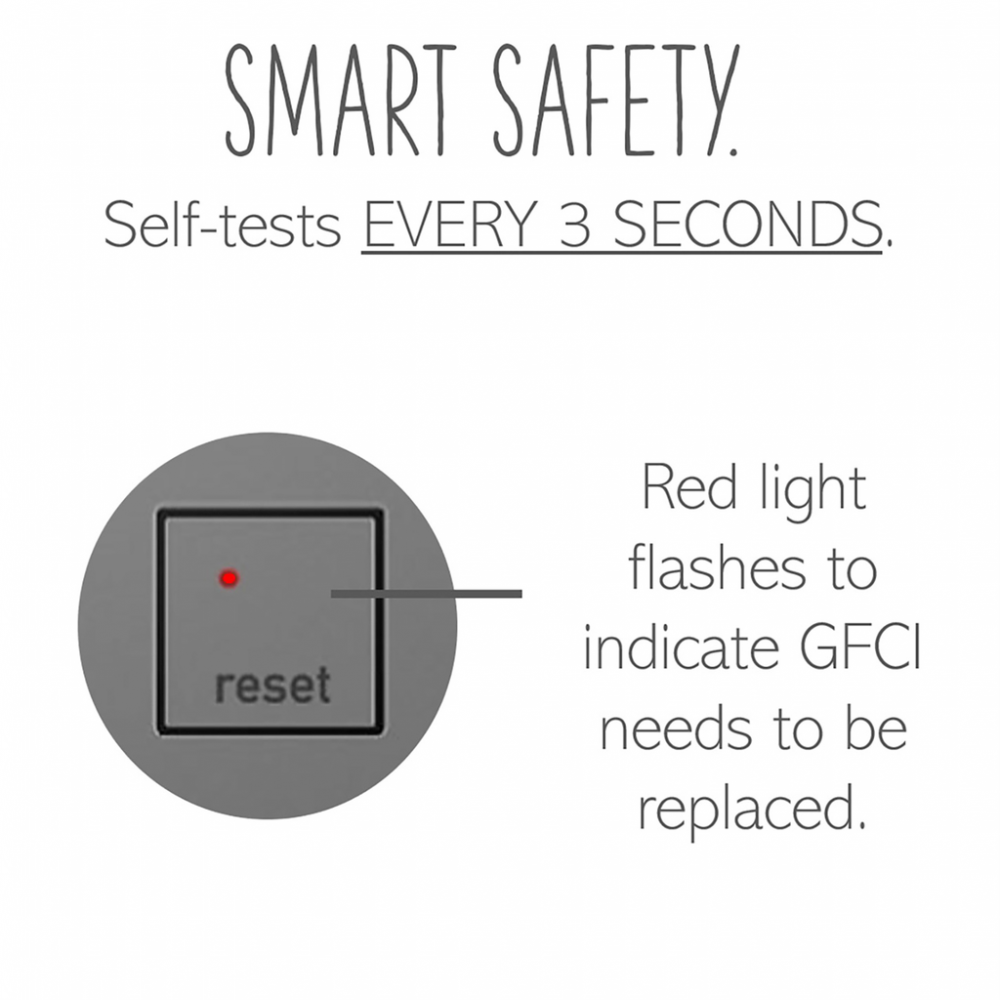 Add contemporary style, safely, to kitchens, bathrooms and more, with GFCI Outlets from the adorne Collection. Meeting Electrical Code* for ground fault protection in the home, GFCI outlets make it easier to fix trips right where they happen ? no more confusion or running to the breaker box. The adorne GFCI Outlets also self-test automatically every three seconds to ensure reliable protection from shock due to ground fault occurrences. *GFCI protection is required by code in bathrooms, kitchens, garages, basements, outdoor areas, and for any other outlets found within six feet of a sink or water source. GFCI outlets should always be used when replacing existing GFCI outlets during renovation.Made exclusively for use with screwless Wall Plates from the adorne? Collection, sold separately.