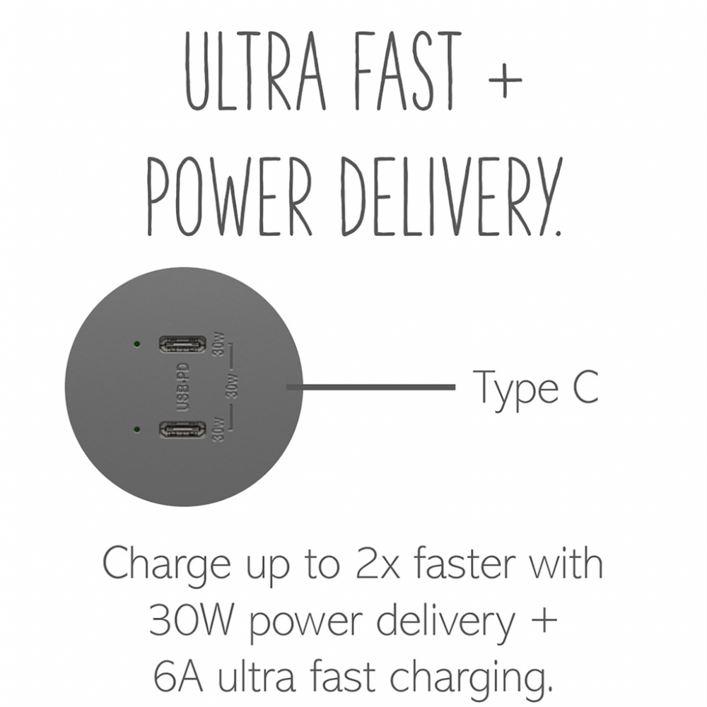 adorne? Ultra-Fast Plus Power Delivery USB Type-C/C Outlet Module, Magnesium