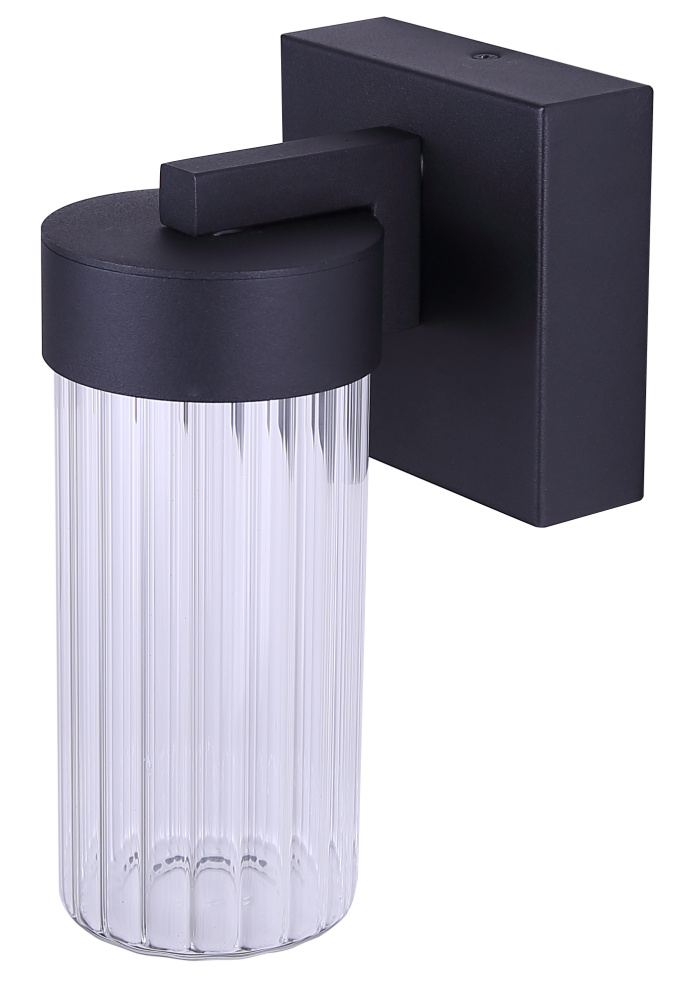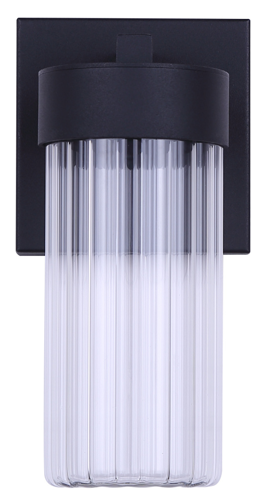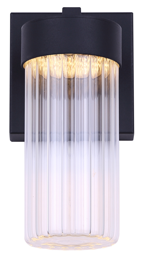 AERON LED Outdoor Wall Light Clear Ribbed Glass Black Finish 500 Lumens 3CCT