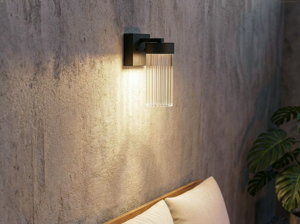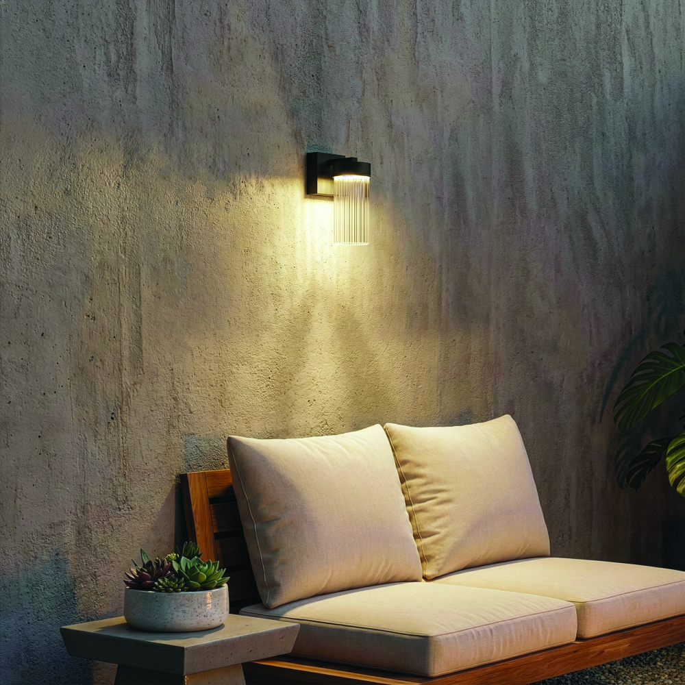 Modern Aesthetic: The sand-textured black finish pairs beautifully with clear ribbed glass to create a timeless yet contemporary outdoor wall light. Its natural-inspired palette adds subtle depth while grounding exteriors in a modern naturalistic style.