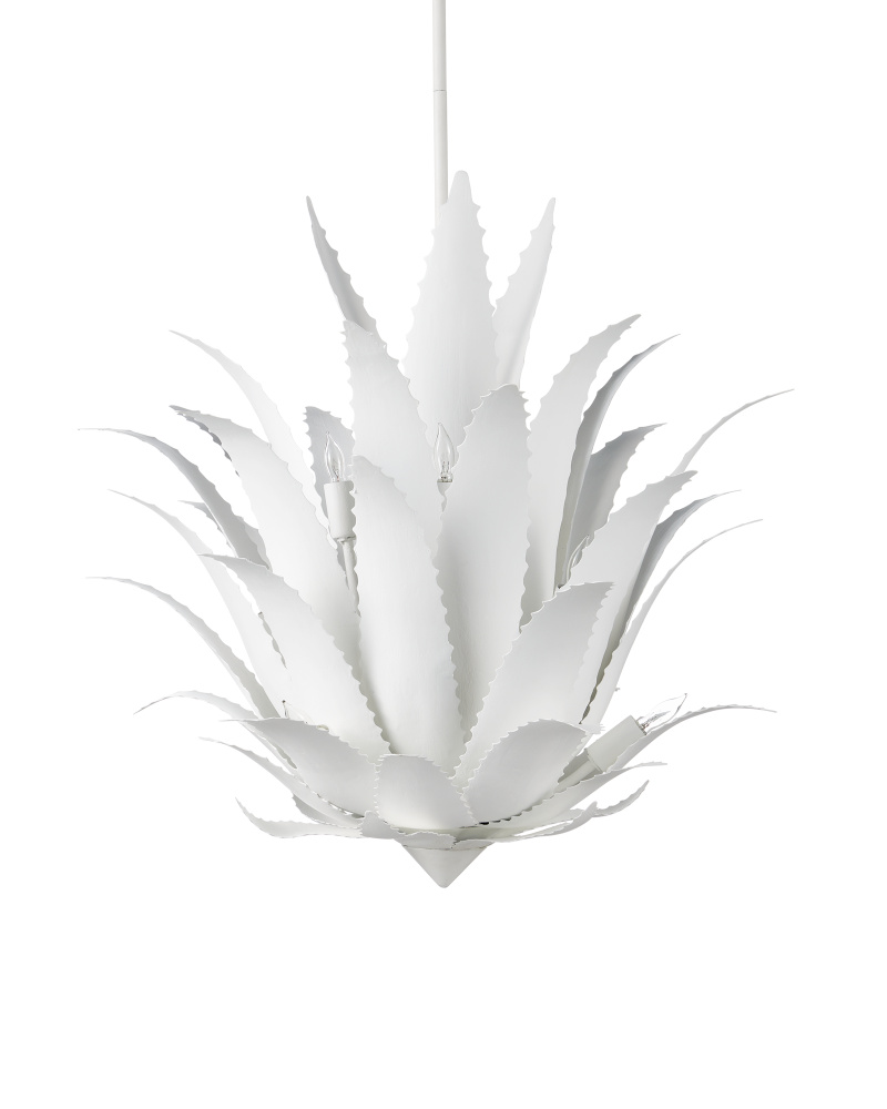 The Agave White Chandelier was inspired by the flourishing plant of the same name, whose spiky, leathery fronds curl up from the ground. This sense of movement has been captured in the flowing spikes on this white chandelier. “My love of the Agave plant, of which hundreds of varieties flourish in the peninsula, has inspired me for many years,” says the fixture’s designer Marjorie Skouras. Her passion for the Yucatan shines through in this wrought iron creation covered in a crisp gesso white finish. Adjustable from 31" to 73" with use of included chain/rod kit/cable. If your space calls for a longer drop, additional chain/rods/cable is available for purchase.