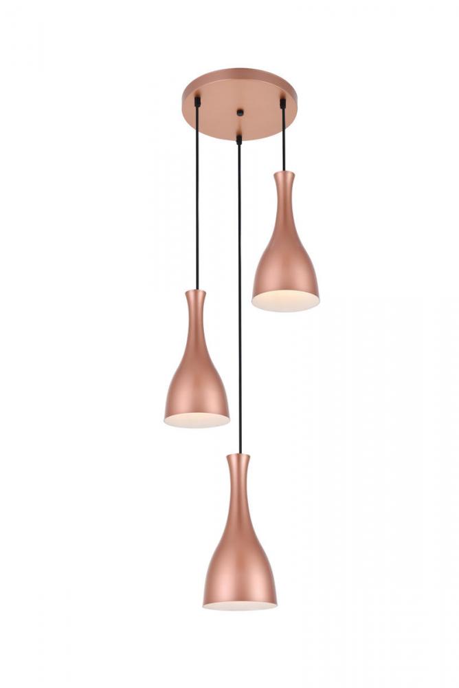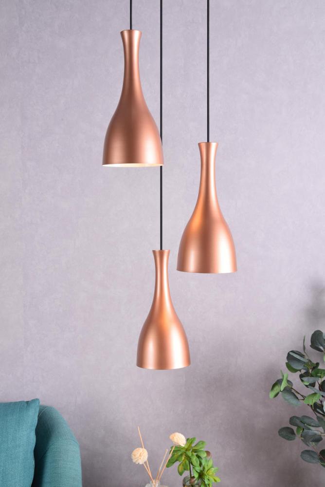 Take a chance on a fresh style with the sleek Aiken collection 3-lights pendant lamp in a honey gold exterior/white interior finish. The wine-bottle shaped shade adds a novel and playful personality combined with urbane charm that will surely create an exciting aesthetic in your dining room, living room, or entry way.