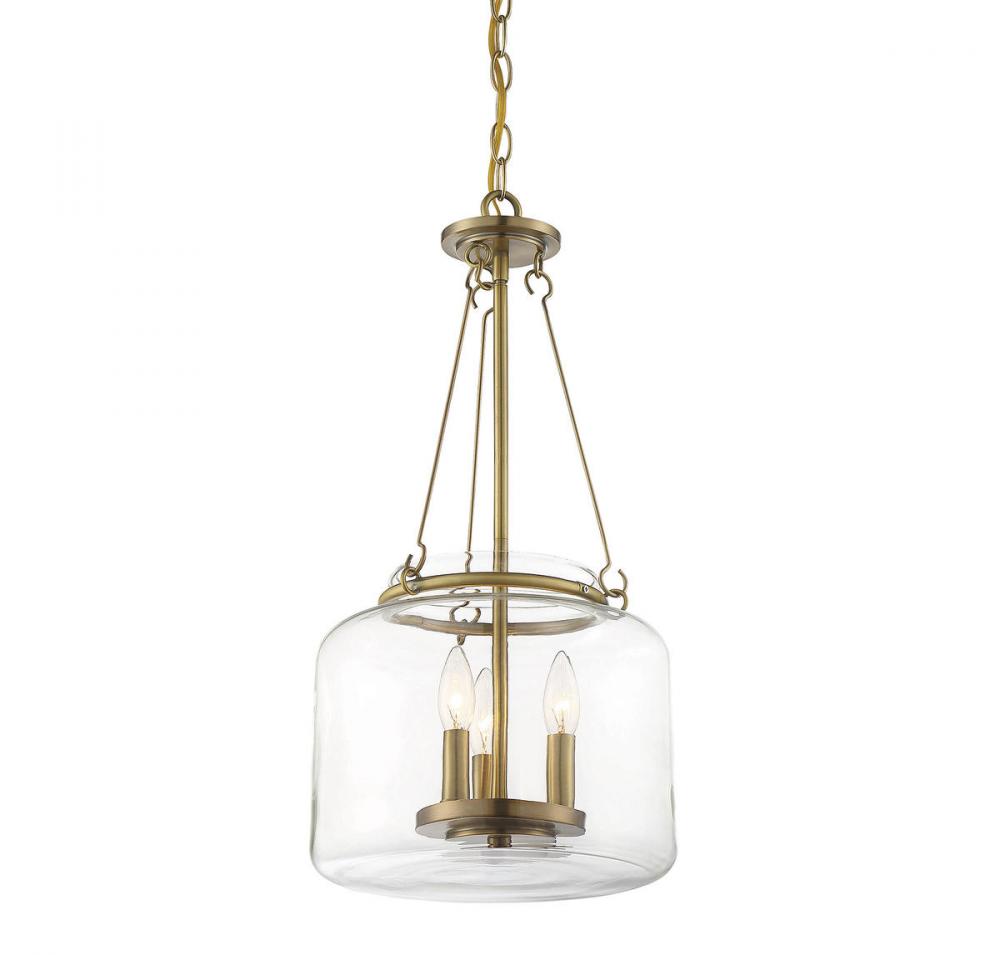 The Akron 3-light pendant from Savoy House proves that a simple style can be stunning! Its square clear glass shade protects the light sources within and is accentuated by thoughtfully-detailed hardware. Finished in rich warm brass. Pendants are very versatile and can be used in many different indoor spaces, including kitchens, foyers, offices, great rooms, bedrooms and even bathrooms. Bulbs not included. Try using stylized bulbs like Edison or tubular bulbs for a different look! The warm brass finish can be matched with brass hardware or mixed with hardware in other finishes. Akron brings a touch of vintage inspiration to any style of room, especially classic, traditional and transitional. When you choose a Savoy House lighting fixture, you can be certain you've selected a piece that will withstand the test of time.