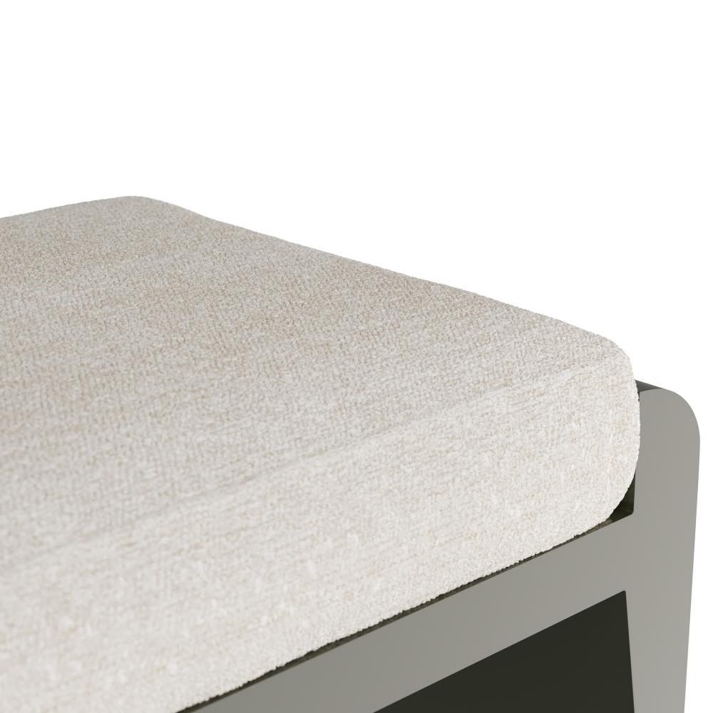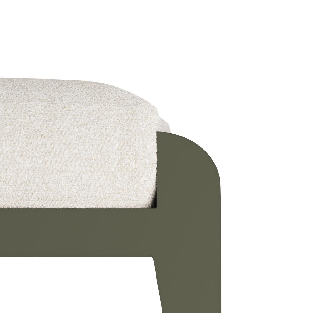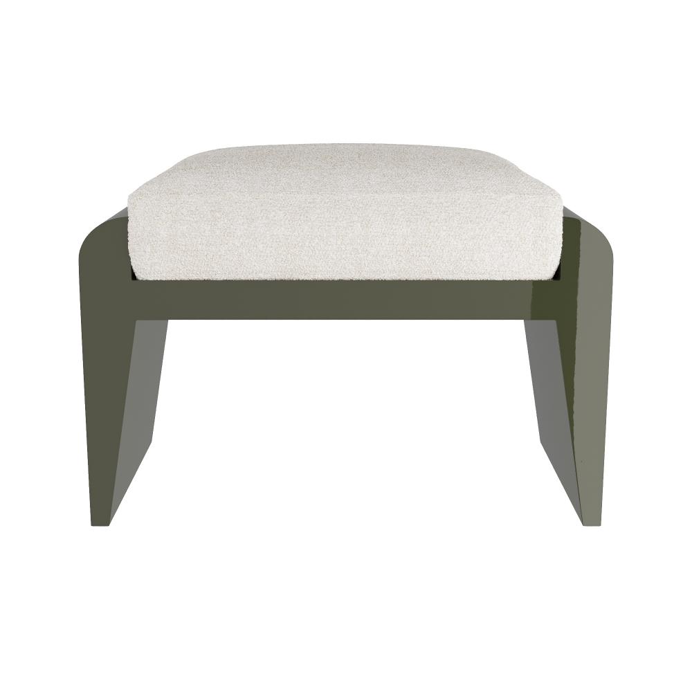 Using a lacquer technique, our moss-finished stool has a timeless appeal. Clean lines and curved angles allow it to work with a myriad of décor styles. Topped with a cloud bouclé seat.