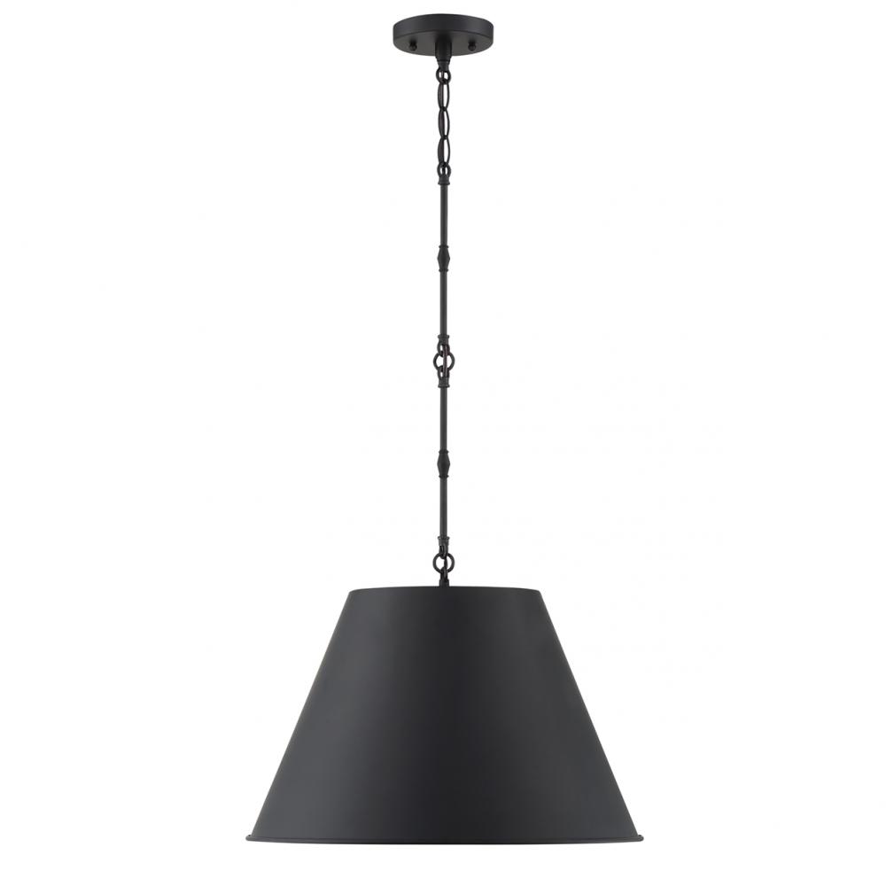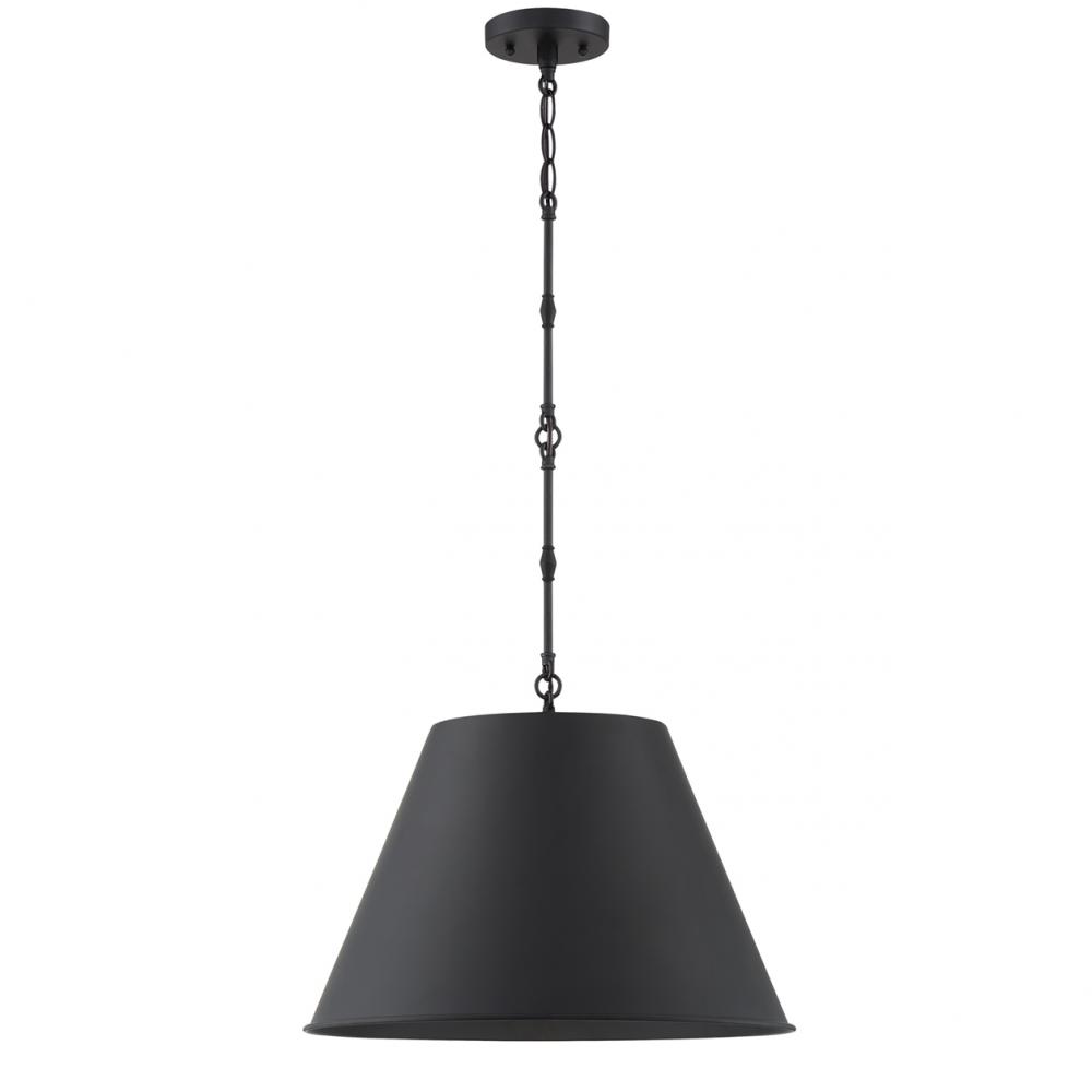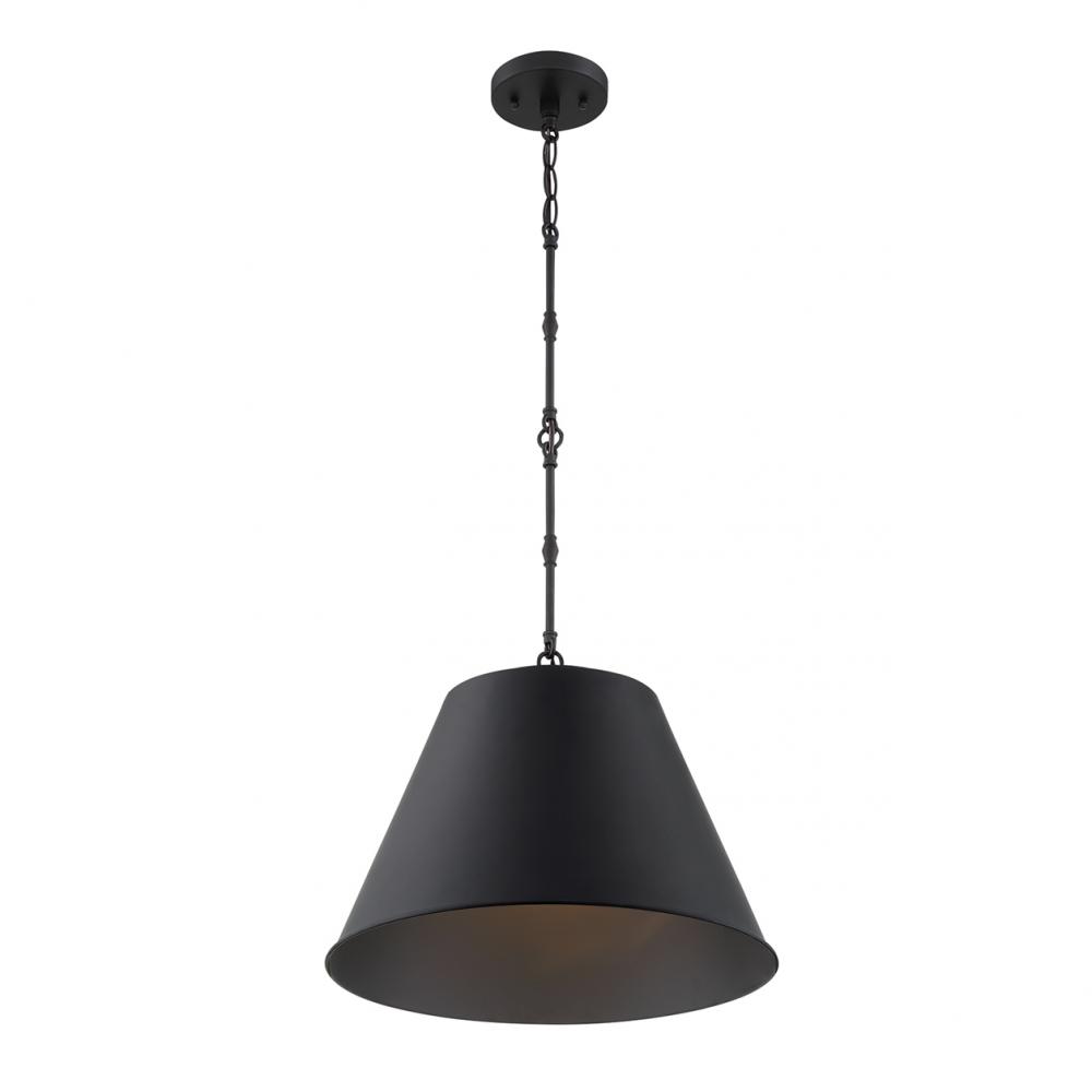 The Savoy House Alden 1-light pendant showcases the beauty of metals with an opaque shade and subtle, smart detailing on the hanging chain, creating an eye-catching look for your home. Matte black finish. Pendants are extremely versatile and can fit in many different spaces, such as kitchens, family rooms, great rooms, foyers, entryways, offices, bedrooms and bathrooms. Because this pendant is chain-hung, you can use as much or as little chain as you need to fit your specific hanging height needs, and this pendant can be used on a sloped ceiling. Alden’s shade design concentrates light downward, so it is great for directed task lighting. You can pair Alden with hardware finished in black or mix it with hardware in other finishes. Its relaxed elegance means it is a perfect choice for rooms of any decor style. When you choose a Savoy House lighting fixture, you can be certain you've selected a piece that will withstand the test of time.