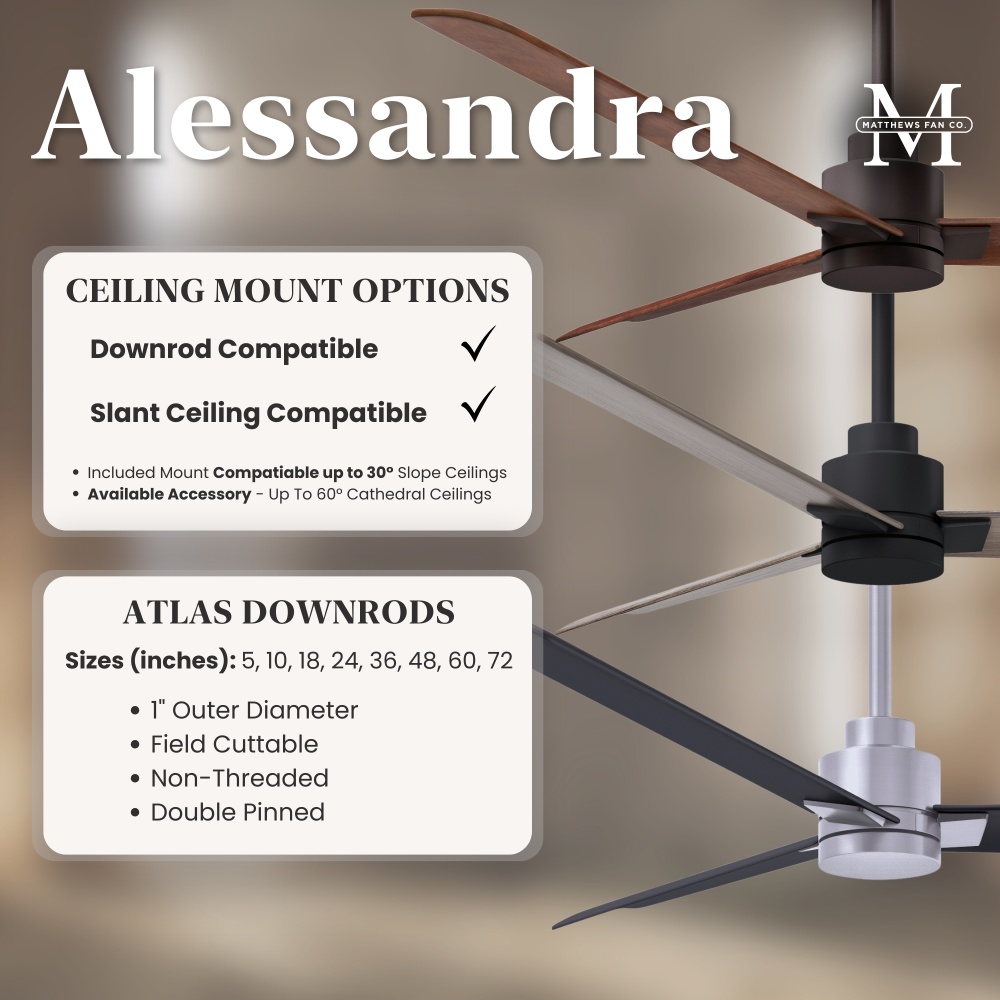 Minimal form with maximum efficiency. with a wide range of sizes, the Alessandra can accommadate any size space. This thoughtfully crafted and versatile fan will complement any aesthetic and improves the health and comfort of any room. Highly customizable, the Alessandra is available in 5 different body finishes, 7 blade options and even a color changeable light kit. Suitable for fully exposed outdoor areas. Backed by a limited lifetime warranty, our fans are of the highest quality and will dutifully perform for years to come.