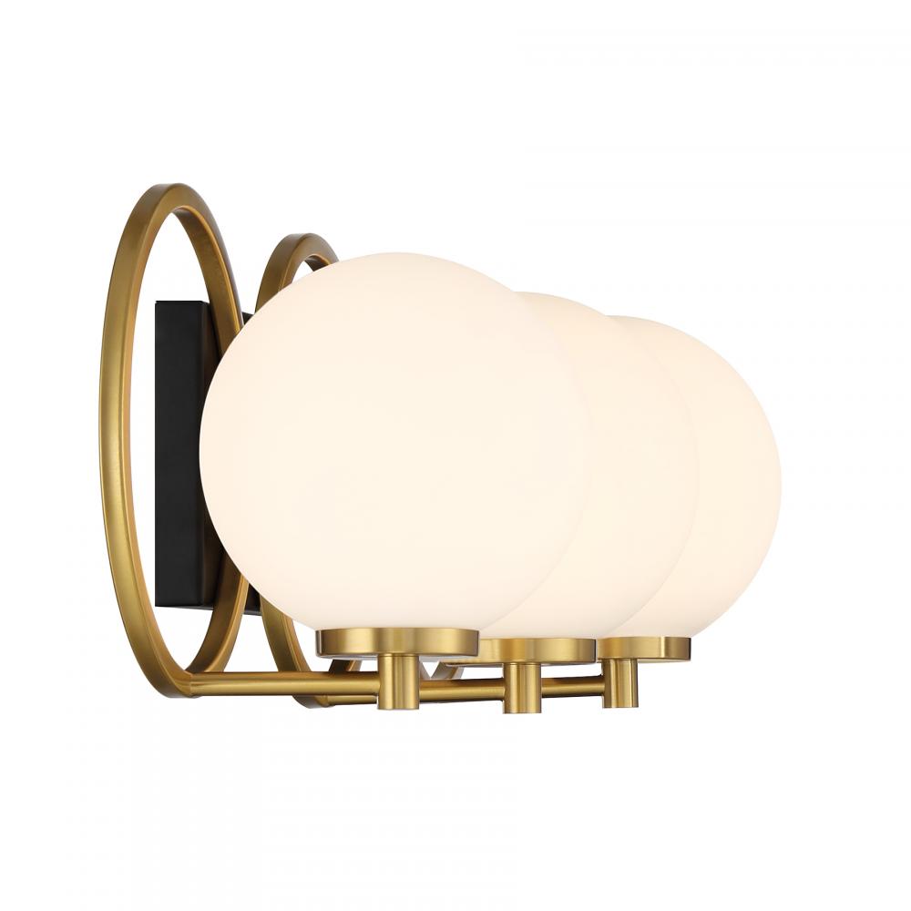 Alhambra 3-Light Bathroom Vanity Light in Matte Black with Warm Brass