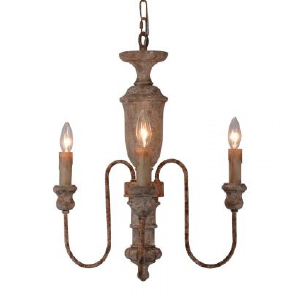 Neoclassical in origin, the Alina chandelier features a washed grey finish and natural wood construction. This blend of antique and rustic tastes distinguishes the chandelier as a classic option for the modern home.