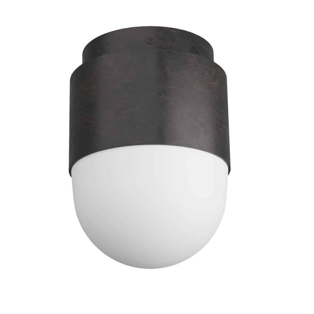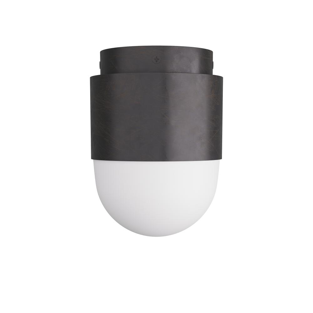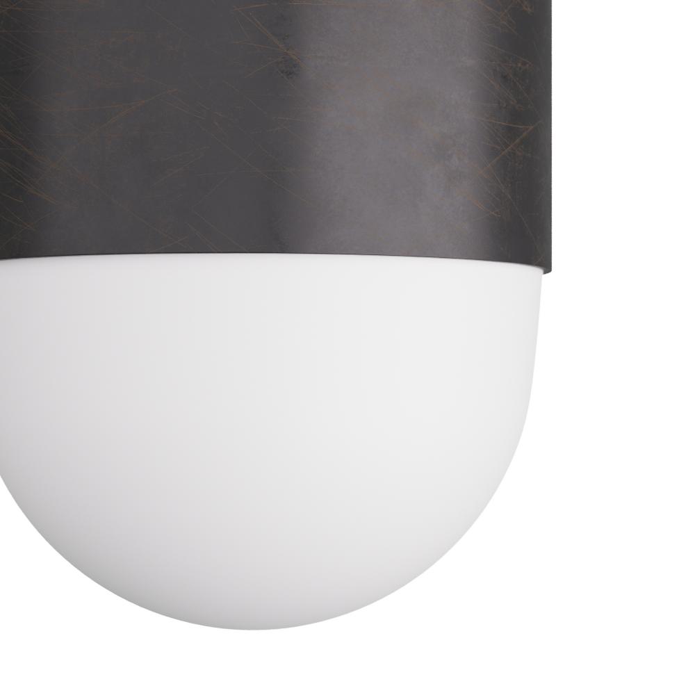 With its simple stepped design and turned metal construction, the Allentown adds a touch of sophisticated industrial design. Its sturdy iron construction is elevated with an elegant finish of English bronze, centered with a cylinder of opal glass. Damp-rated, although limited covered outdoor conditions may affect finish.