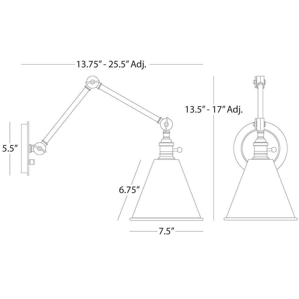 Alloy Wall Sconce in Warm Brass Finish and matching metal shade has a sleek mechanical function in mind. Crisp geometry and polished metal make this piece the perfect choice to elevate your space.