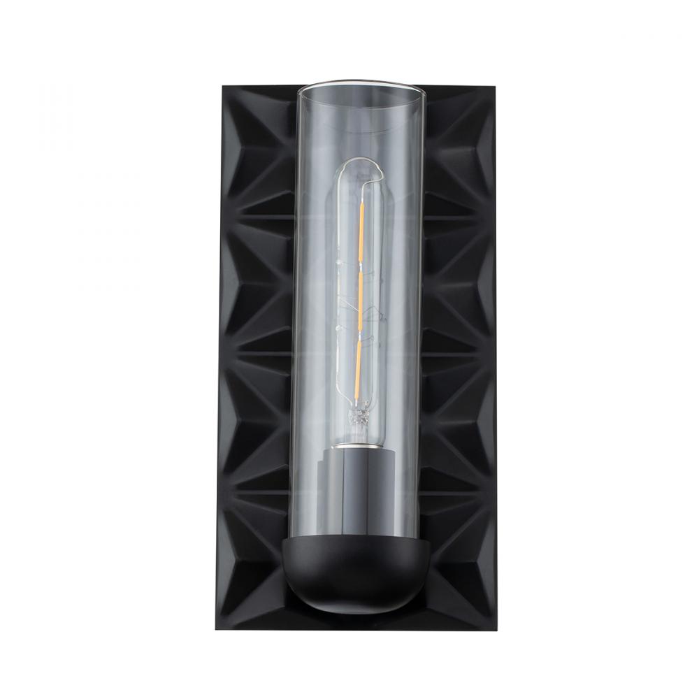 Alpha 1 sconce in Matte Black. Geometric pattern offered in Transitional design with Glass Candle Cover of 1 60w light. ADA Compliant at 4" depth