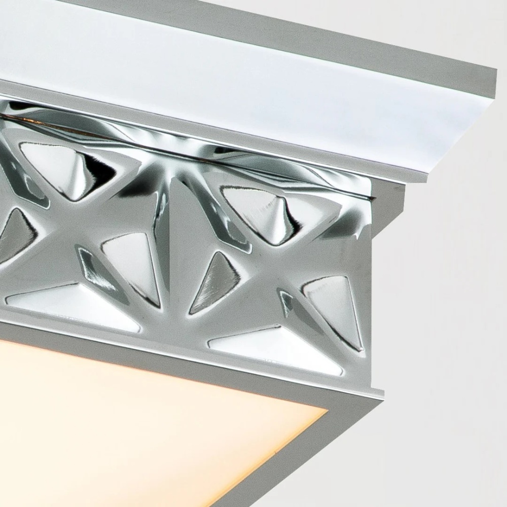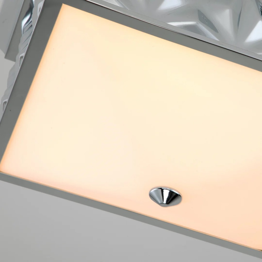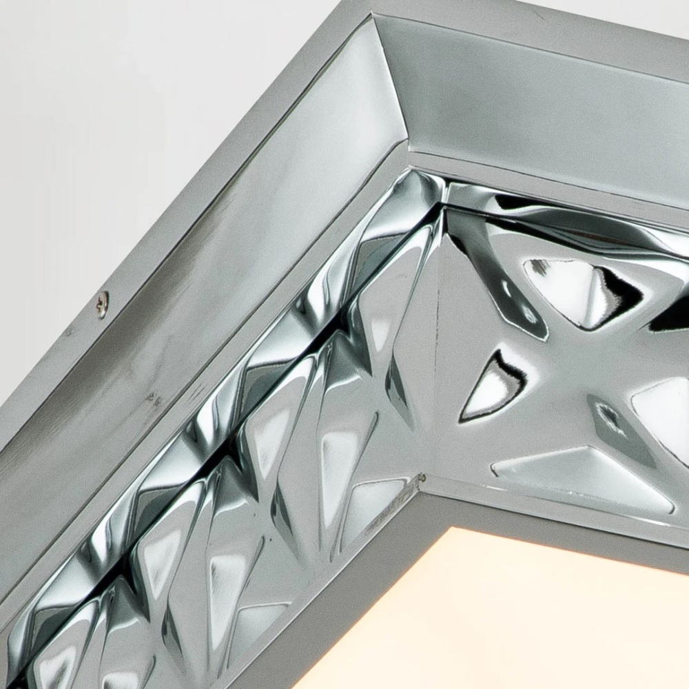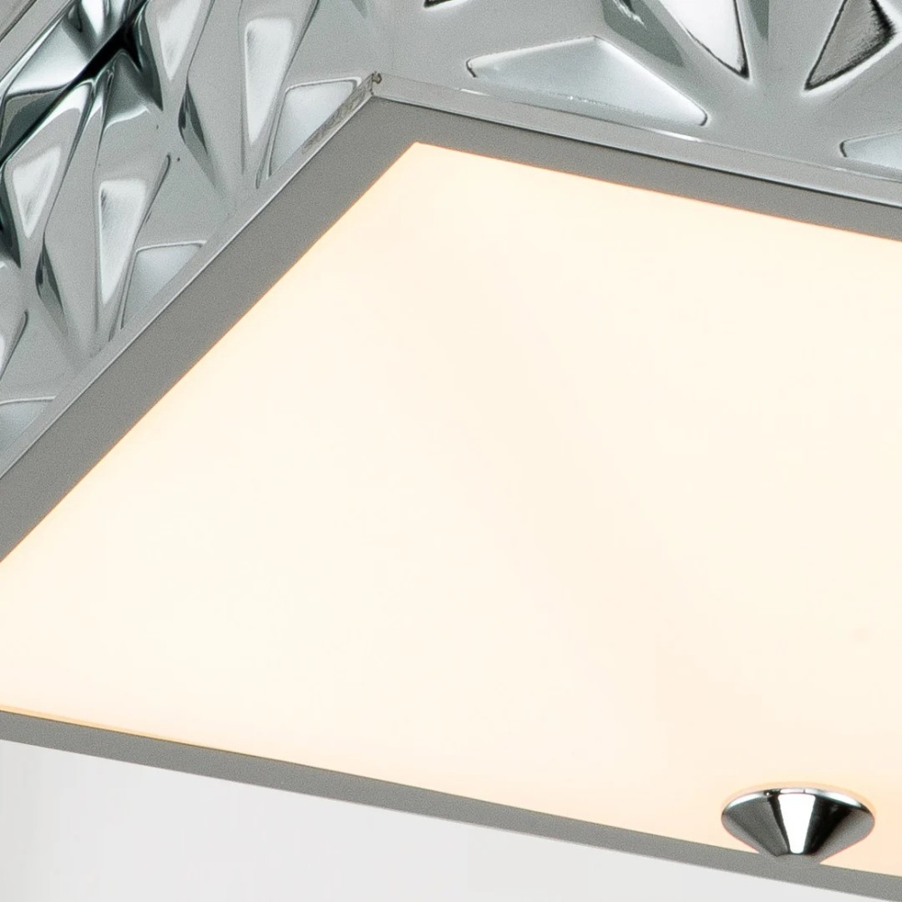 Brighten beautifully with this 14.5" square polished chrome flush mount. Chic shape enchants. Damp-rated, with creamy white glass for a luminous, cozy vibe.