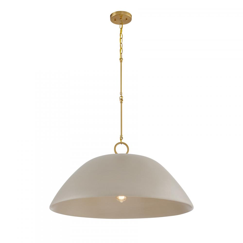 The Savoy House Alta 1-light pendant lets you illuminate your home with natural beauty. Its shade is crafted from spun bamboo and wears a textured Concrete finish that pairs nicely with the Warm Brass hardware. Whether used solo or in groupings, Alta is sure to stand in the spotlight! It is 33" in height and 30" in width. Uses one standard size bulb of up to 60 watts. Bulb not included. This fixture is supplied with 120" of hanging chain.