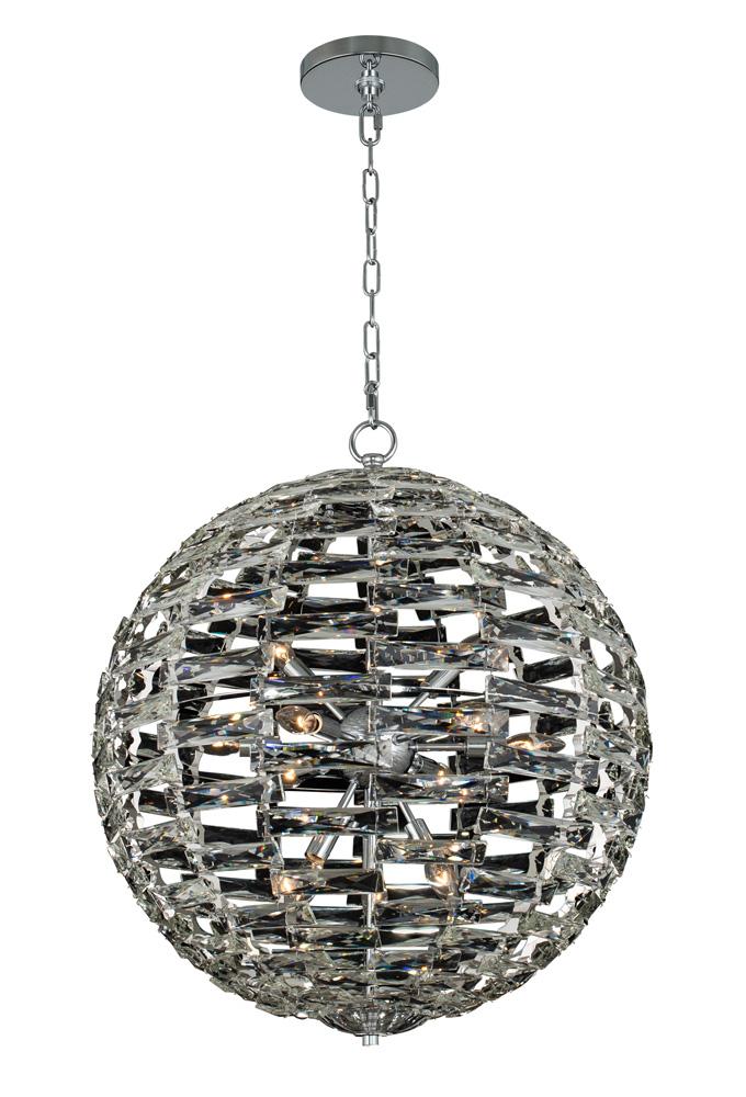 The Alta Collection is made of many crystal bars carefully arranged to make a perfect sphere crystal diffuser. Inside the Chrome (010) frame a sputnik light cluster adds an inner layer. The Alta is a great center piece in any room.