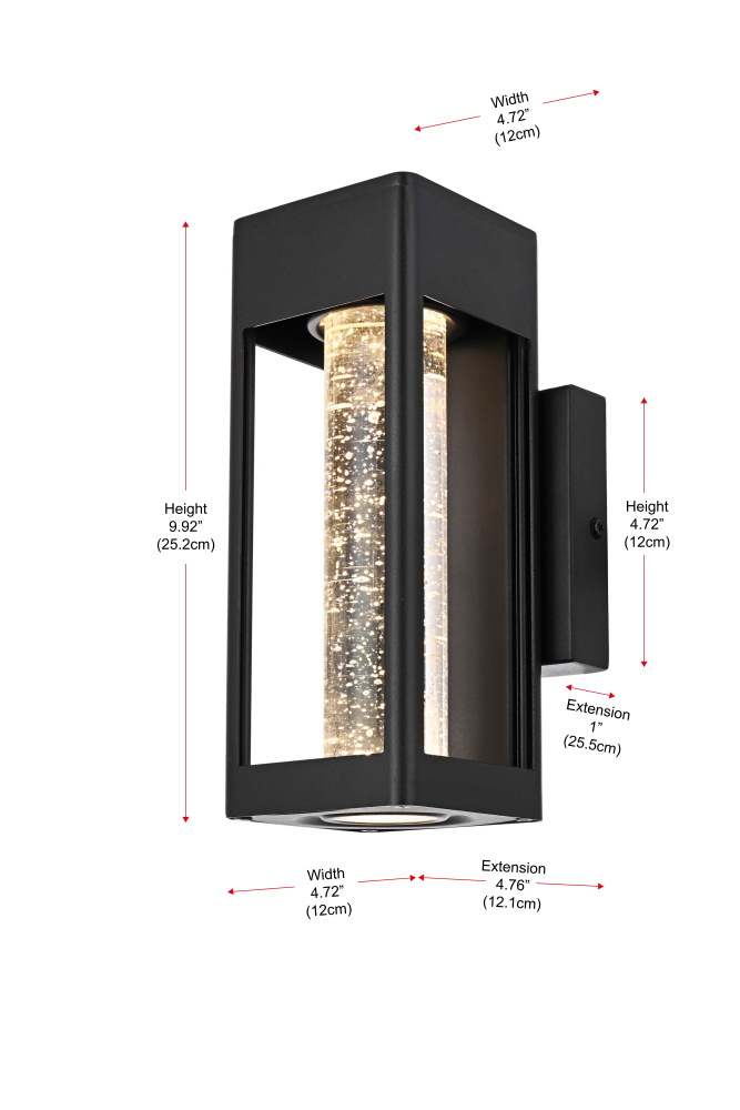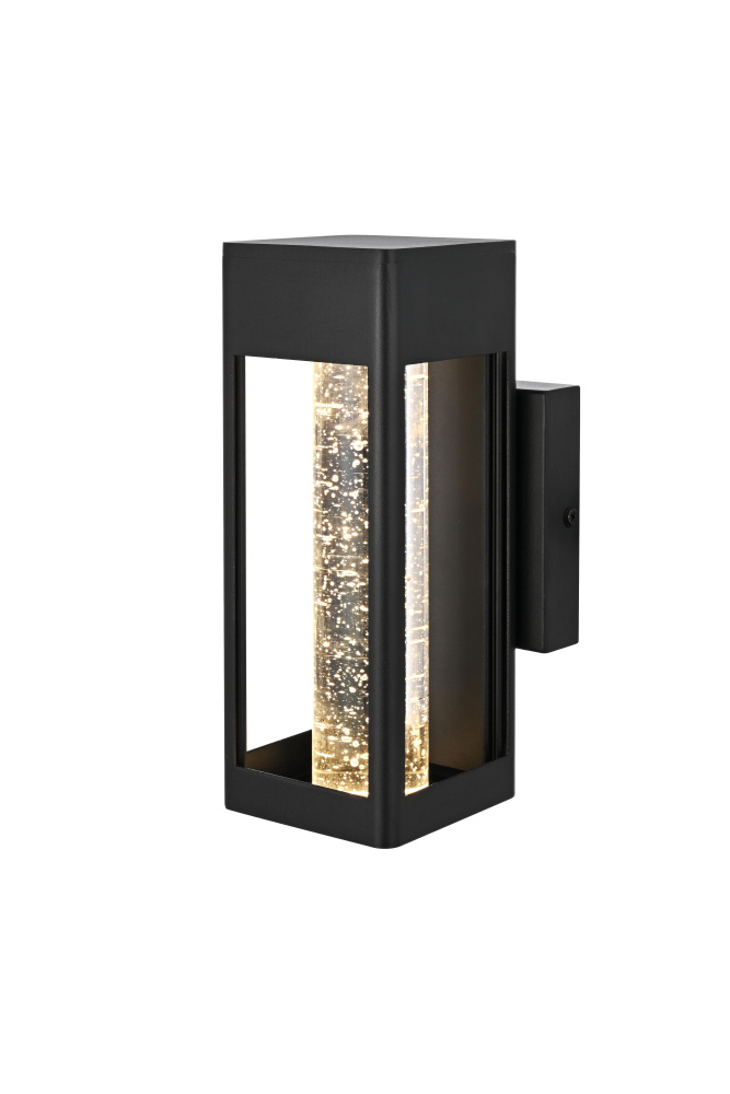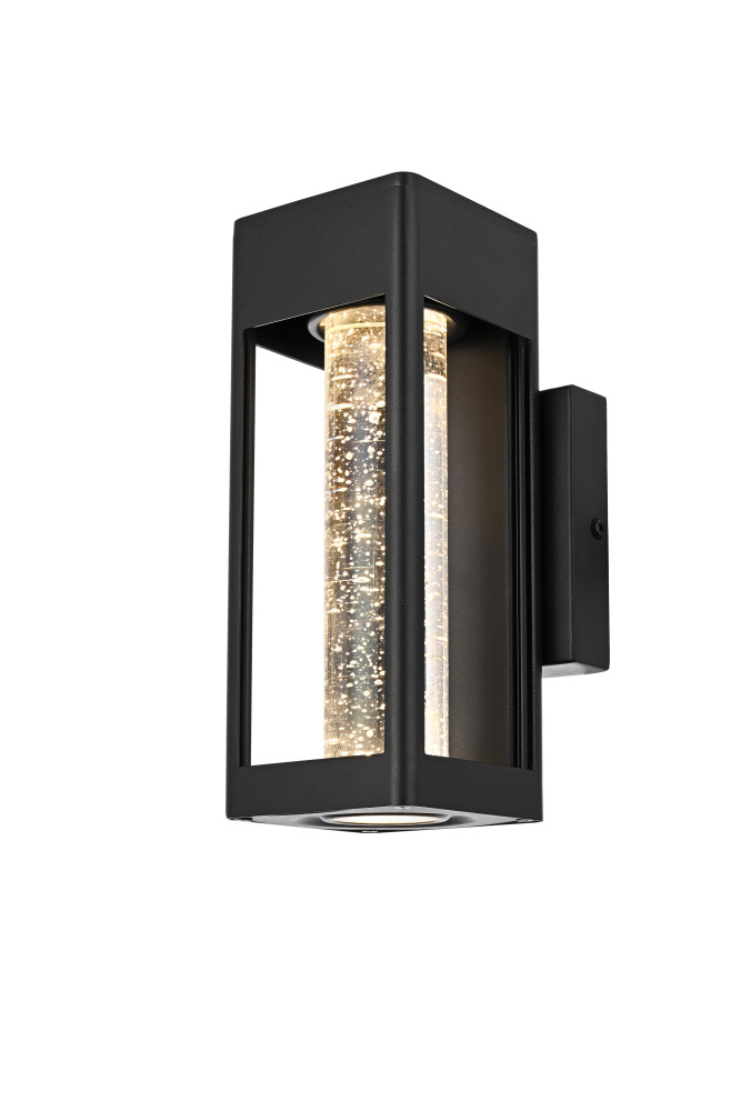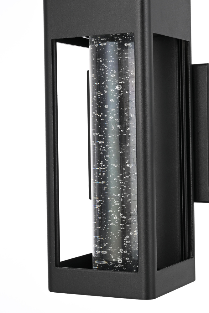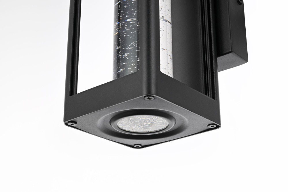 Designed with a strong geometric frame, this LED wall sconce adds structure and definition to outdoor spaces. The rectangular black metal body encloses a thick 2-inch clear seedy glass cylinder, which enhances the light diffusion while maintaining a crisp, modern glow. Built for durability, the iron and aluminum frame ensures long-term performance, while the ETL Wet Rated certification makes it a reliable choice for entryways, patios, and exterior walls. The compact 5”L x 1”W x 5”H backplate allows for a secure and streamlined mount, and the 7-inch pre-wired lead simplifies installation. Featuring an integrated 11W LED, this fixture emits a warm 3000K light at 400 lumens, with a 120-degree beam angle and 90 CRI for balanced illumination. Dimmable and hardwired for stability, this sconce combines precision and functionality for contemporary exteriors. Available in multiple sizes from 10” to 32”, this fixture provides flexibility for different architectural styles and placements. Built with marine-grade, corrosion-resistant aluminum, this sconce withstands coastal conditions for long-lasting durability.