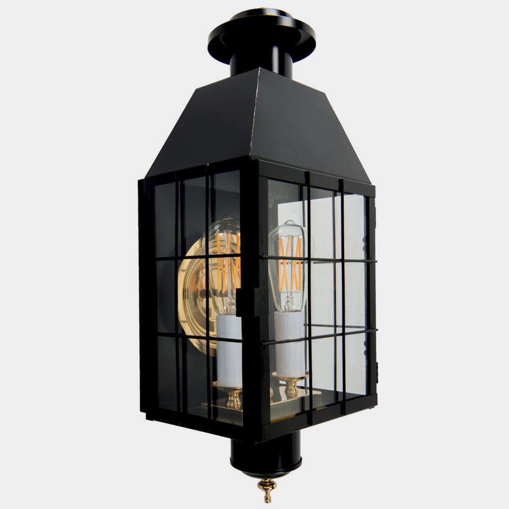 Inspired by the traditional style of colonial New England, the large Heritage outdoor lantern is the perfect architectural detail for classic colonial homes. The rectangular lantern features soldered grid work and a visible lamp, which adds historic flair to any number of outdoor spaces.