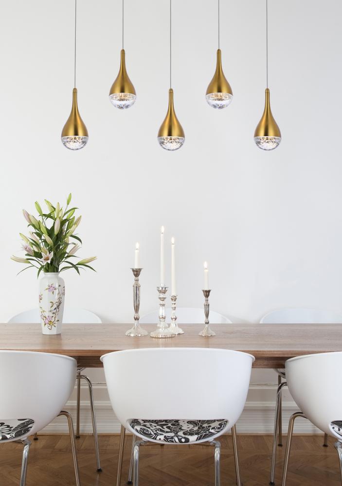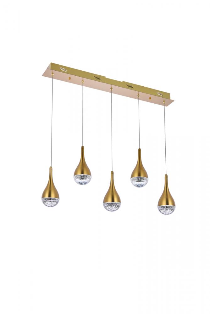 The pendant features 5 mesmerizing linear solid bubble crystal design that adds a touch of glamour and sophistication to any space. The solid crystals create a stunning play of light and reflections, illuminating your room with a radiant glow.