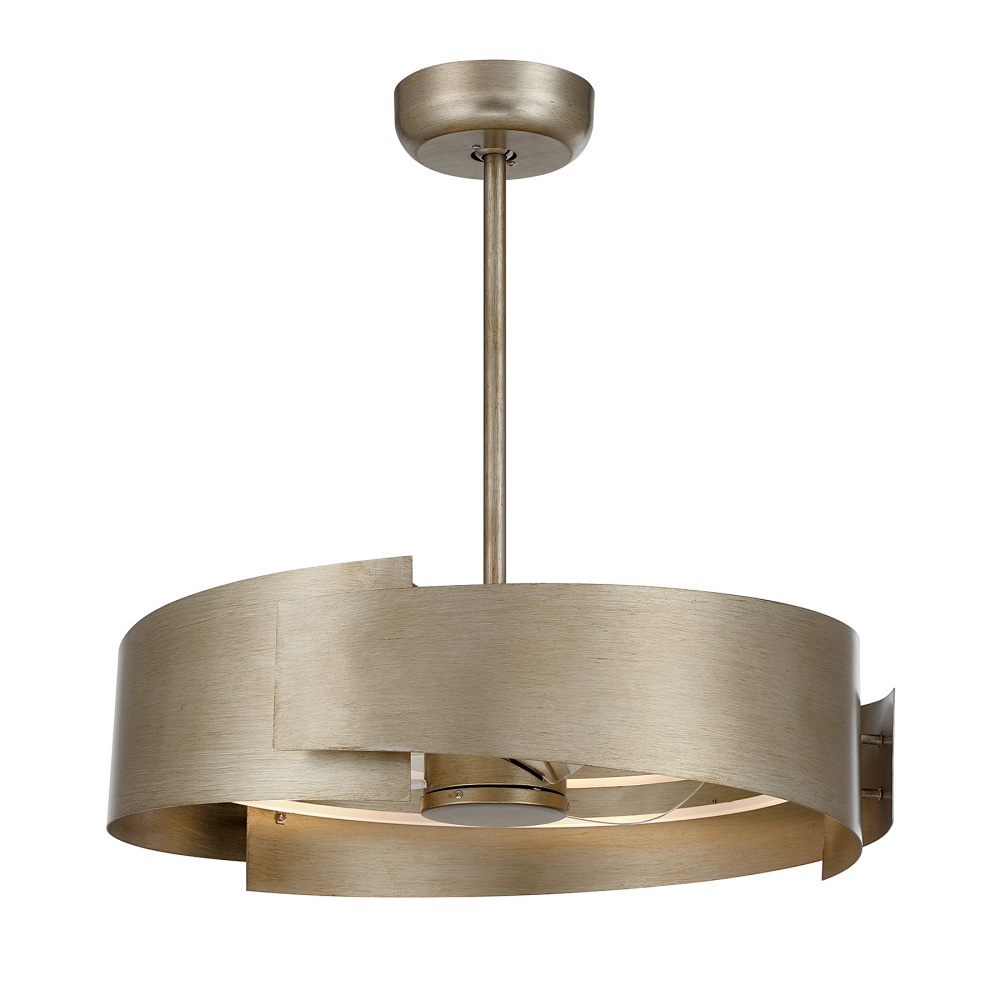 The Savoy House Amiena Fan D’Lier brings sculptural elegance into motion, with sweeping ribbons in a textured Silver Patina finish that seem to swirl around the light. Integrated LED illumination fills the fixture with a bright, inviting glow, while the efficient DC motor keeps air flowing quietly and smoothly. A handheld remote control adds easy, at-your-fingertips comfort. Amiena is 28" tall and 28" wide and includes both a 4" and 18" downrod. This innovative design is part of the Savoy House Fan D’Lier collection - exclusive creations that fuse the beauty of a chandelier with the refreshing performance of a ceiling fan.