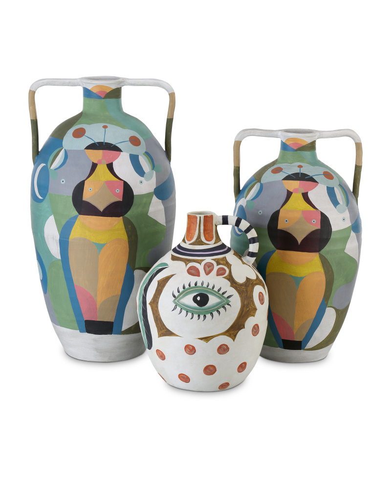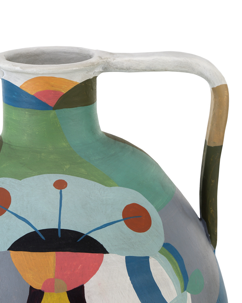 Made of terracotta with vibrant glazed motifs on the matte surface, the Amphora Large Multi-Colored Vase is a colorful paradox; while the shape is rooted in ancient Greece, the decorations were inspired by cubism. Bringing the motifs into the modern day, the colorful contemporary renderings will draw attention in any space. The multicolored decorative jug will be a definite conversation-starter, as it was inspired by Picasso and celebrates Mediterranean culture during the 1940s.