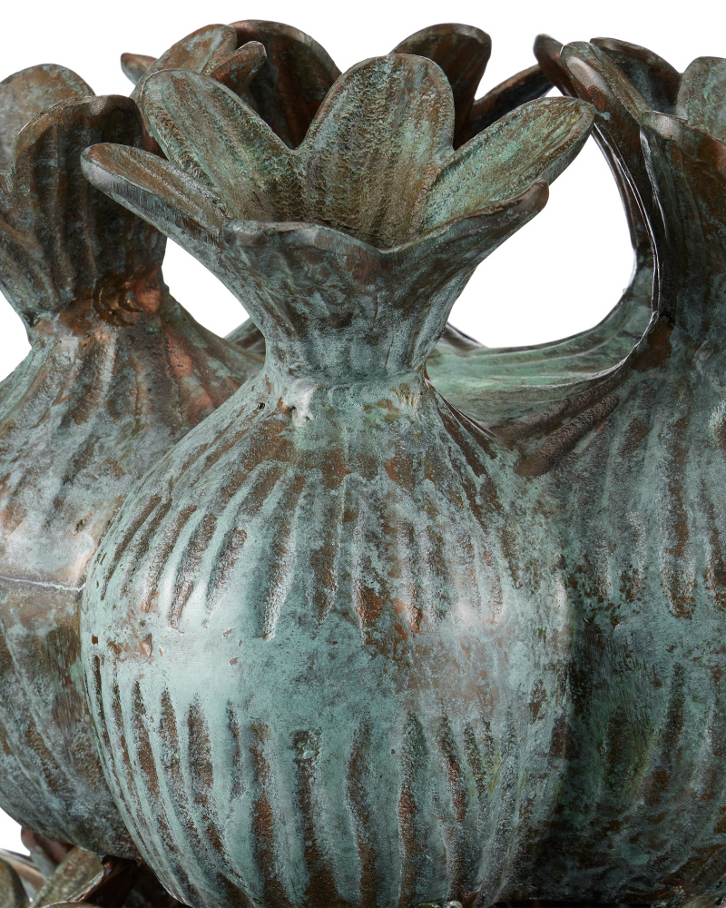 Though it has the artisanal appeal of ceramic or terracotta, the Amsterdam Tulip Vase is made of cast aluminum. Once the creation is removed from the mold, the surfaces of the blossoming vases are treated to create an oxidized patina. Fill it with flowers and this coppery-green vase will be a blossoming show-stopper.