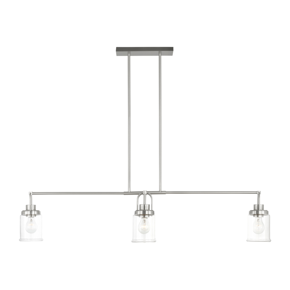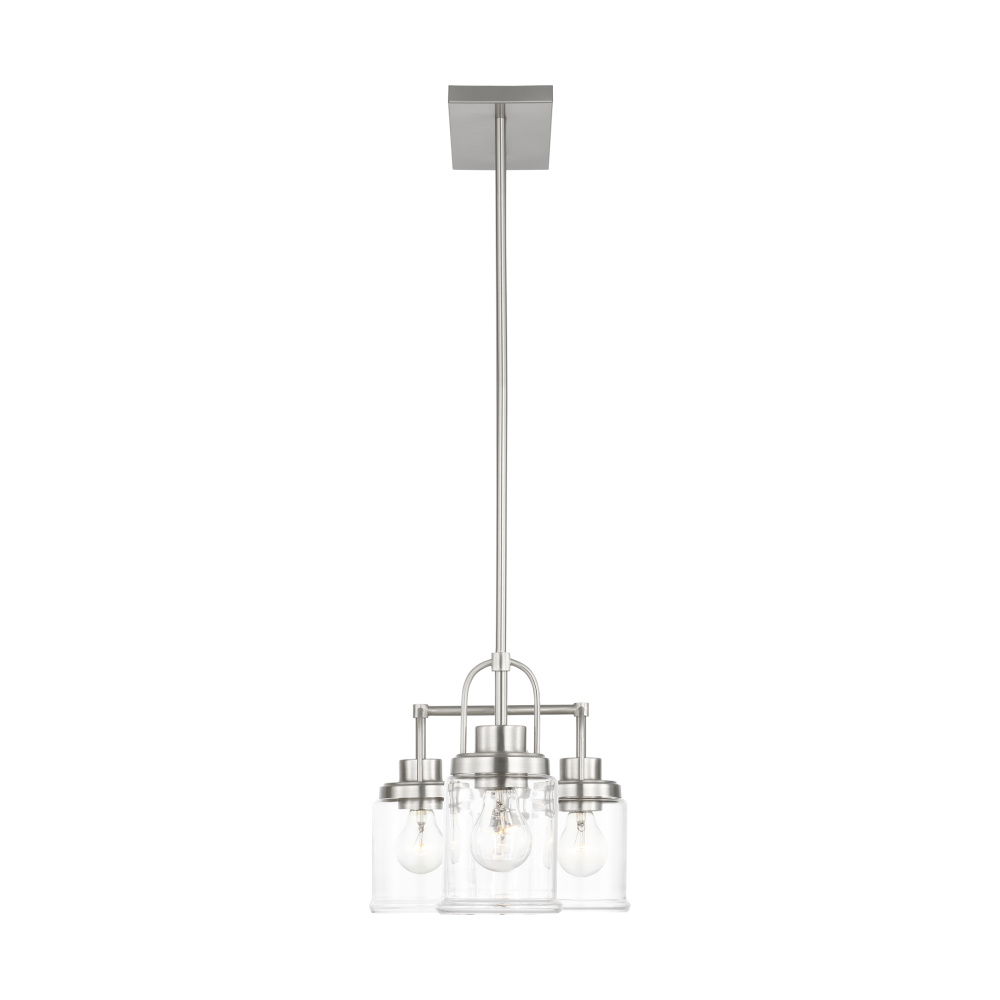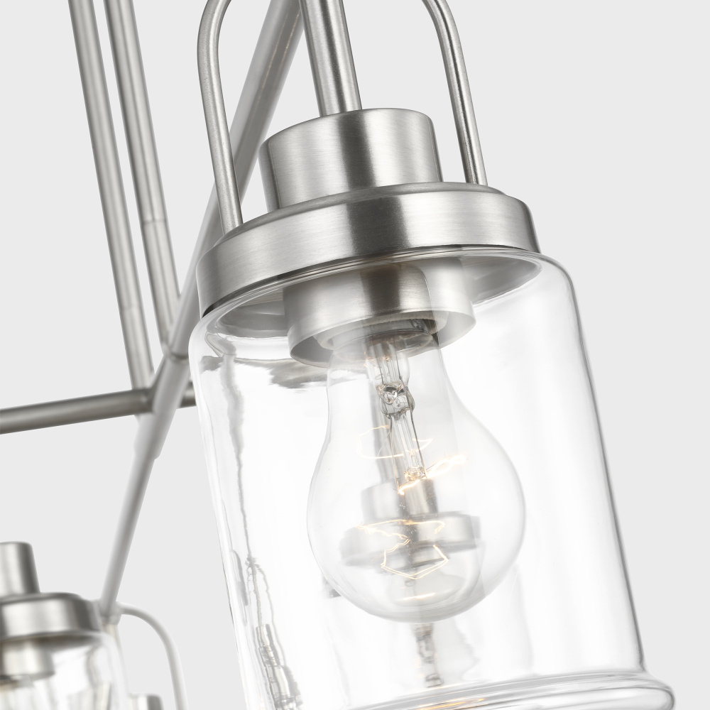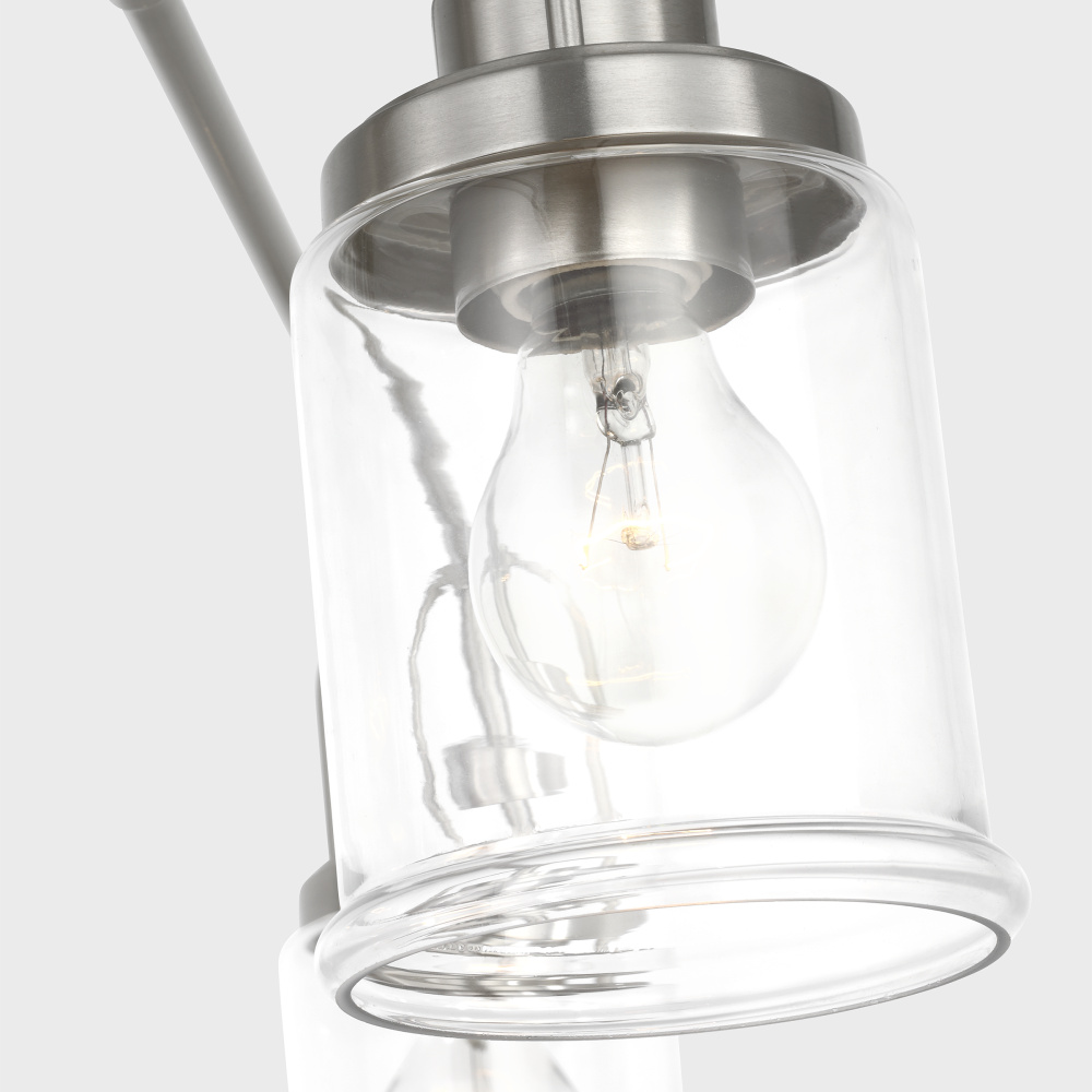 Crafted with Steel in a Brushed Nickel finish with clear glass shades