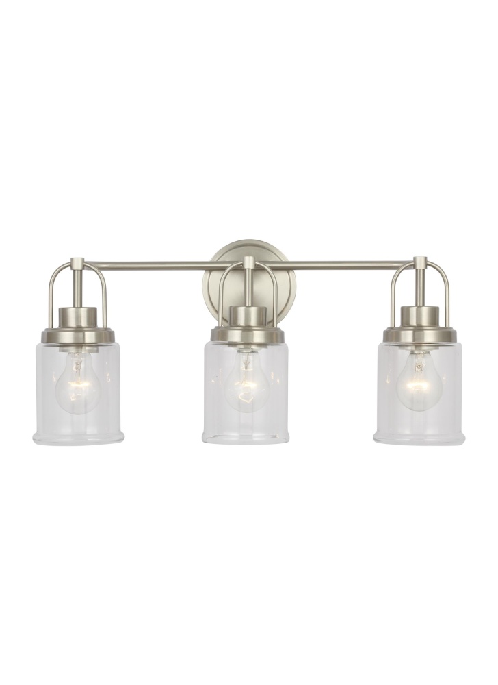 Crafted with Steel in a Brushed Nickel finish with clear glass shades