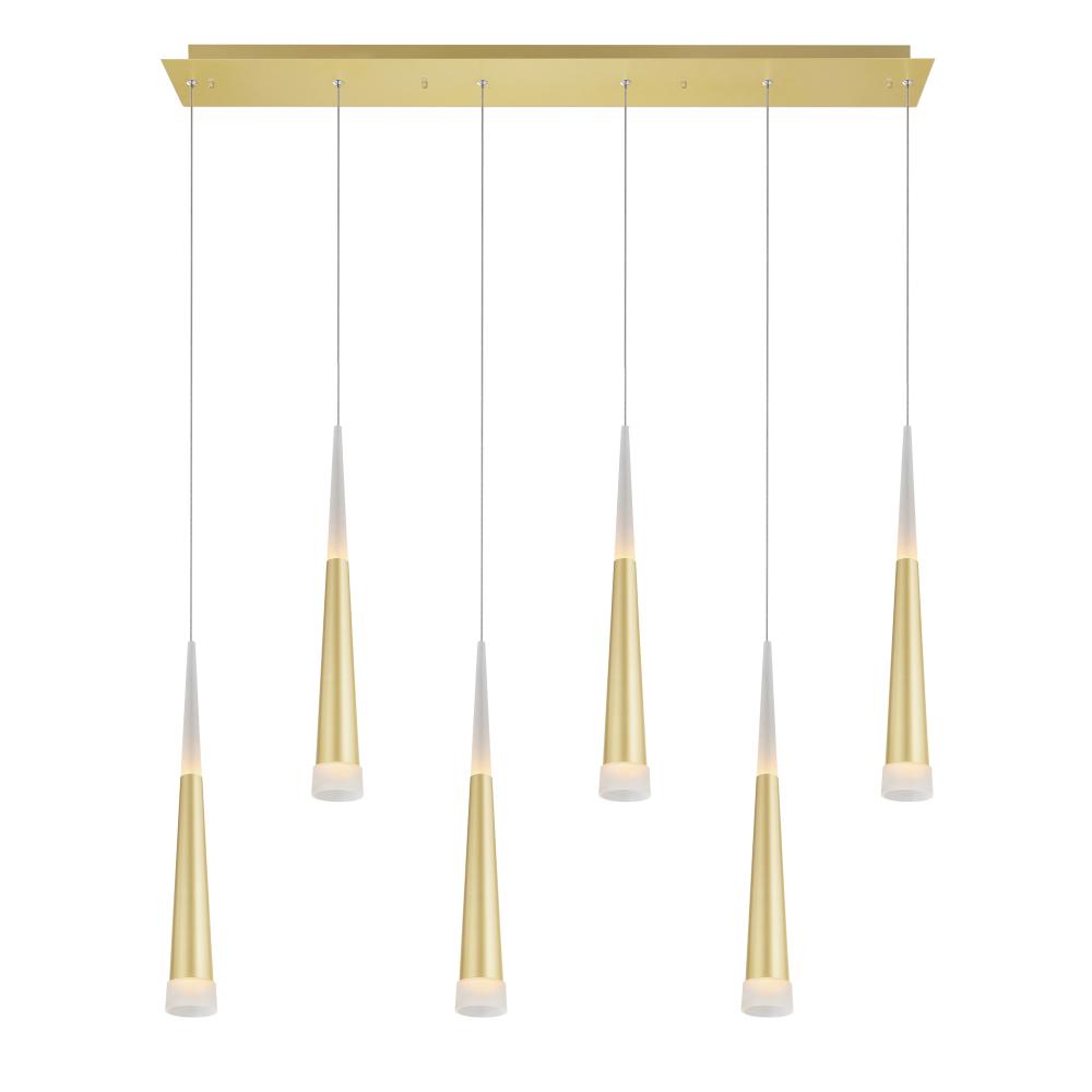 Turn up the luxe with the Andes 40" Satin Gold LED Pool Table Light. Designed with clean lines and a bold geometric profile, this oversized fixture instantly modernizes any space with its sleek silhouette and upscale satin gold finish. Perfect for a game room, kitchen island, or dining room, this 6-light integrated LED chandelier provides bright, energy-efficient illumination while making a stylish statement. Whether you're entertaining or unwinding, this light brings warmth, personality, and function to your space. Finish: Satin Gold Fixture Width: 40" Light Count: Integrated LED (6-Light) Bulb Base: N/A Integrated LED Style: Contemporary / Modern / Luxe Mount Type: Down Chandelier