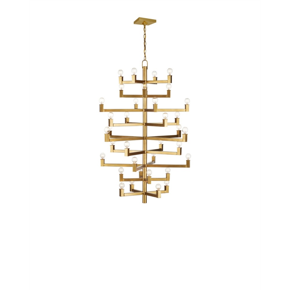 Clean articulated arms with resolute geometries make the big, bold Andre Large Chandelier a powerful statement that can easily swing from contemporary to transitional styles, and many in between. Made of wrought iron in a brass finish, the gold chandelier will take on other personalities when the shapes of the bulbs are changed. Tall foyers and great rooms with high ceilings are perfect spots for this luminous modern light fixture, boasting an impressive 36 lights. Adjustable from 57.5" to 126.5" with use of included chain/rod kit/cable. If your space calls for a longer drop, additional chain/rods/cable is available for purchase.