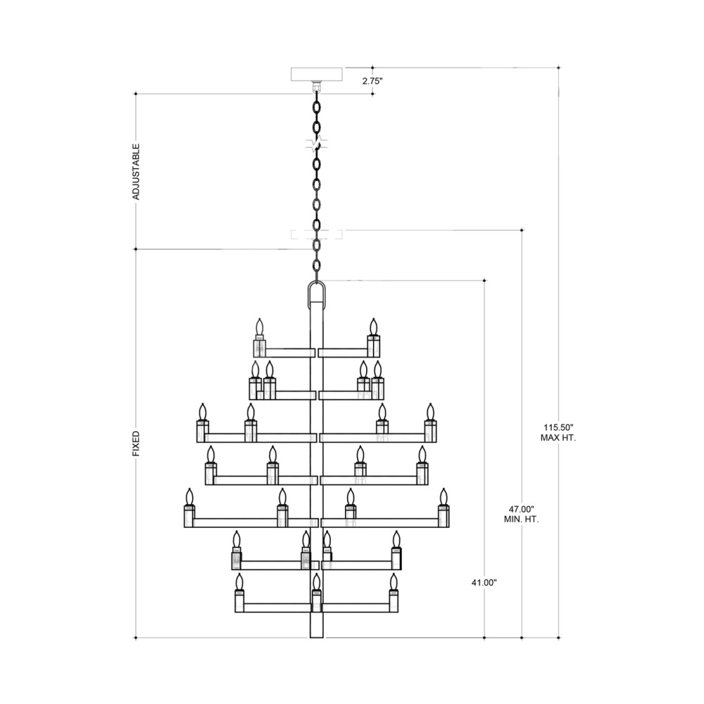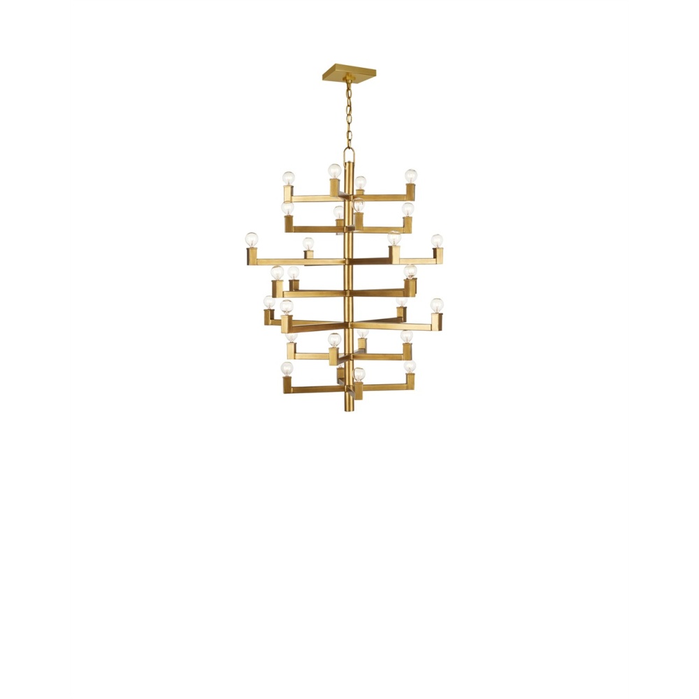 Clean articulated arms with resolute geometries make the big, bold Andre Medium Chandelier a powerful statement that can easily swing from contemporary to transitional styles, and many in between. Made of wrought iron in a brass finish, the gold chandelier will take on other personalities when the shapes of the bulbs are changed. Tall foyers and great rooms with high ceilings are perfect spots for this luminous modern light fixture with 28 lights. Adjustable from 47" to 115.50" with use of included chain/rod kit/cable. If your space calls for a longer drop, additional chain/rods/cable is available for purchase.