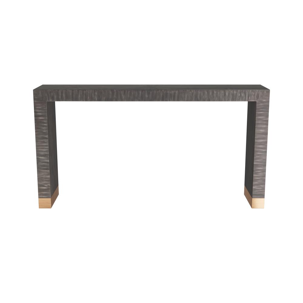 Adorned in a radiant pattern of dark gray straw marquetry on mahogany wood, the Andreas represents the best craftsmanship of a bygone era. Inspired by the classic artist's technique of the 1940s, this minimalist essential is anchored with a base of hand-finished shimmering bronze. Finish will vary.