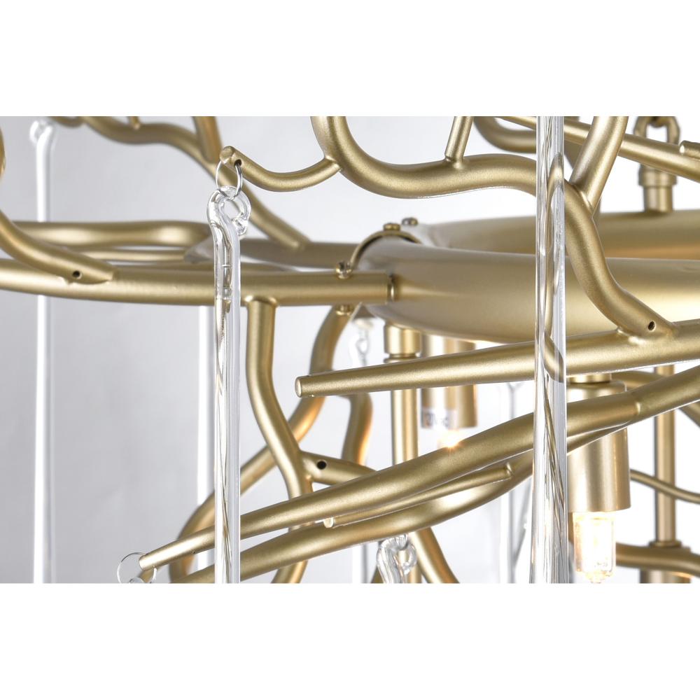 Turn your ceiling into a sculptural showpiece with the Anita 12-Light Chandelier in Gold Leaf. Art meets illumination in this standout piece from CWI Lightings Anita Collection. Inspired by natural forms, the chandelier features a branching silhouette arranged in a circular shape, creating a stunning visual effect when viewed from any angle. Draped with shimmering clear crystals, it reflects light beautifully while adding organic charm to your interior. The gold leaf finish lends richness and texture to the design, bringing an artisan touch that elevates your contemporary settings. With a 43-inch diameter, this chandelier is ideal for spacious rooms that demand a bold lighting feature. Its 12-light (compatible with G9 Halogen or LED) setup ensures both style and functionality, offering warm, ambient glow throughout the space. Installation is straightforward thanks to included hardware and instructions, and the fixture is backed by a one-year warranty for your confidence. Make an unforgettable statementadd the Anita Gold Leaf Chandelier to your home and let nature-inspired luxury shine.