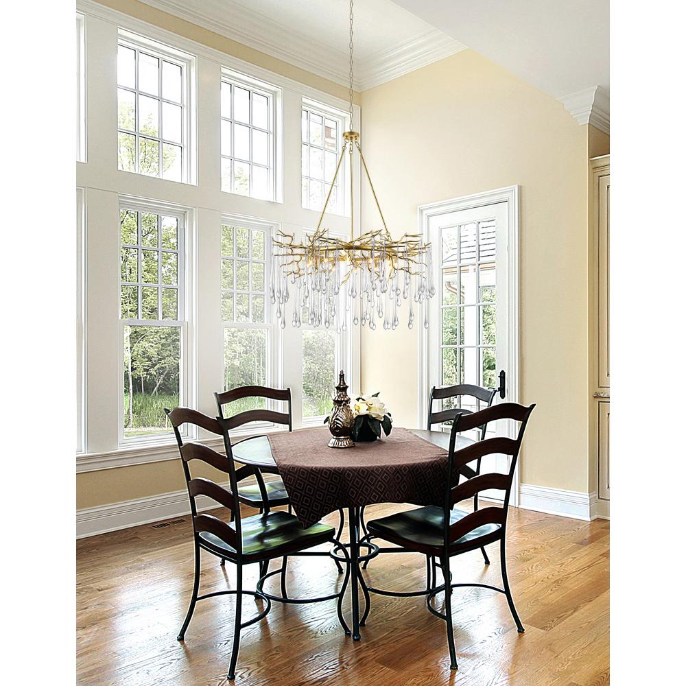 Rich, Textured Elegance: Finished in radiant gold leaf, this chandelier glows with old-world charm and artisanal sophistication; The finish adds depth and warmth, enhancing the sparkle of the crystal accents.