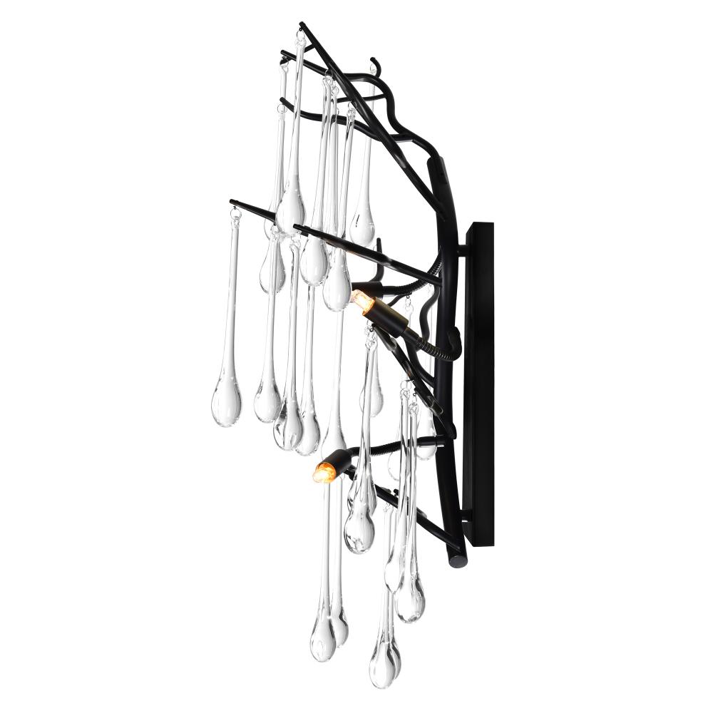 Why settle for basic lighting when you can elevate your space with the Anita 11" Black 3-Light Wall Sconce? Designed with a sculptural form and dripping with crystal teardrops, this enchanting fixture offers a rich blend of glam and drama. Perfect for living rooms, bathrooms, dining spaces, and entryways, this wall light brings a luxurious glow and creates a focal point that feels both whimsical and refined. Finish: Black Fixture Width: 11" Light Count: 3-Light Bulb Base: G9 LED Compatible Style: Glam / Whimsical / Sculptural Mount Type: Wall Sconce