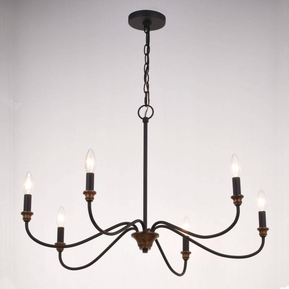 Six sweeping outstretched arms grace this ceiling mounted chandelier with the utmost class. Simple yet elegant, the Annabelle is understated, but easily becomes the conversation piece in the room. Matte black and brushed walnut finishes are the perfect pairing that is ideal for any entryway, dining, or living space.