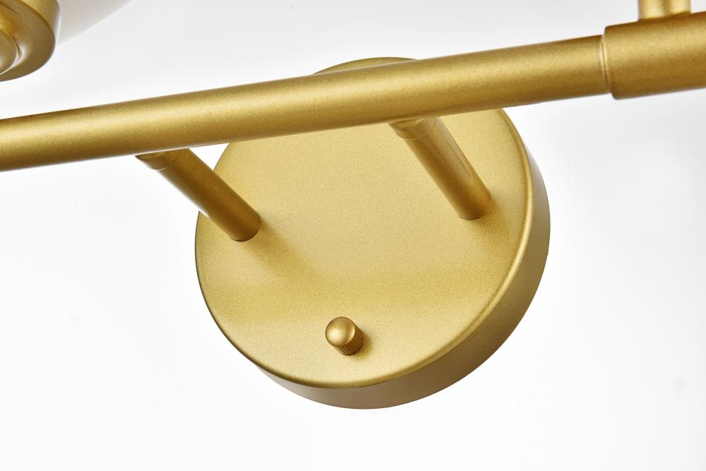 This armed sconce features a streamlined and minimalistic design that complements any space in your home. Shown with the frosted glass shades, this wall sconce is versatile and can be placed in a bathroom,entry way, or hallway. Compatible with dimmers, so you'll have the right amount of light in any given time of the day. The hardwired fixture is safe to use in damp locations. Made from iron with a modern finish, it includes a round backplate and a matching arm that holds in place four 40W bulb ( sold separately). Available in multiple finishes. Can be installed as an uplight or a downlight.