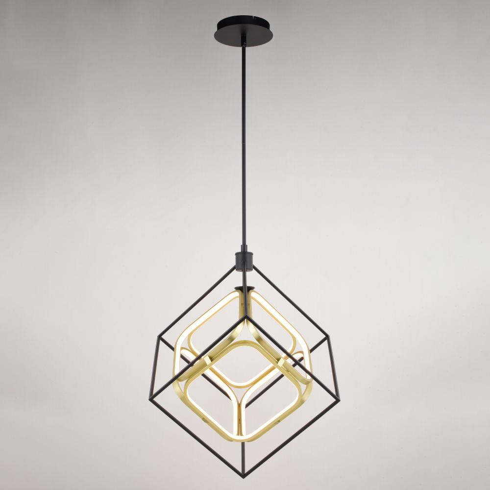 Geometric open cage shade provides bright illumination and a contemporary feel