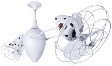 The Ar Ruthiane's unique hourglass support arms grasp bullet-shaped motor housings which rotate about its teardrop center. The fan heads can be infinitely positioned in 180-degree arcs for optimum air movement; the greater the angles of the motors to the horizontal support rods (up or down), the faster the axial rotation. A slow, controlled axial rotation is achieved by both fan head position and fan blade speed.