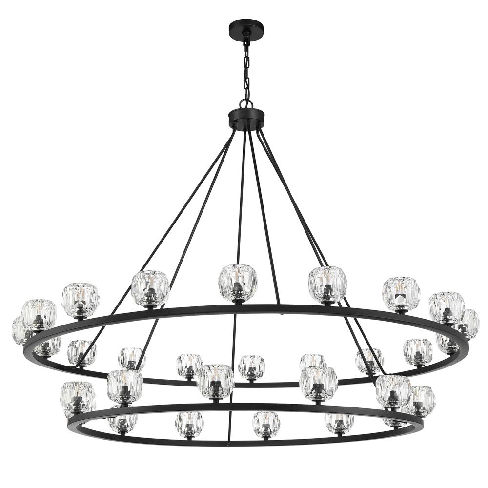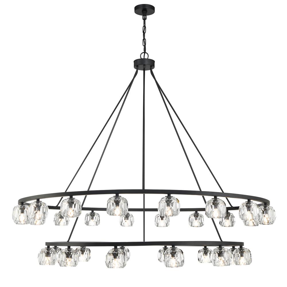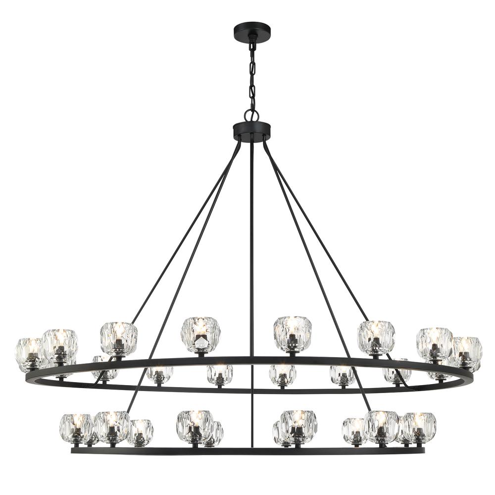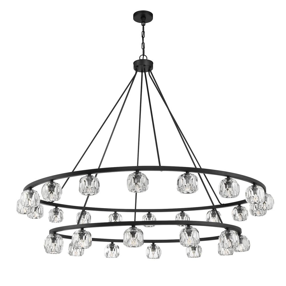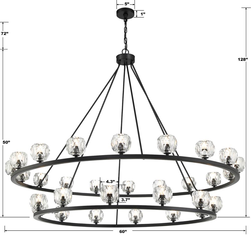 Finely crafted with great attention to detail, the Aragon Collection is a mix of industrial meets modern style. The Matte Black minimalist look includes rods attached to a large frame, facet-cut crystal globes and packed-in G9 Dimmable LED Bulbs, (rated at 3000K, 400 lumens and CRI 80). This functionally timeless fixture can be hung with upward or downward-facing light giving you the flexibility to choose how you would like to set the mood of the room.