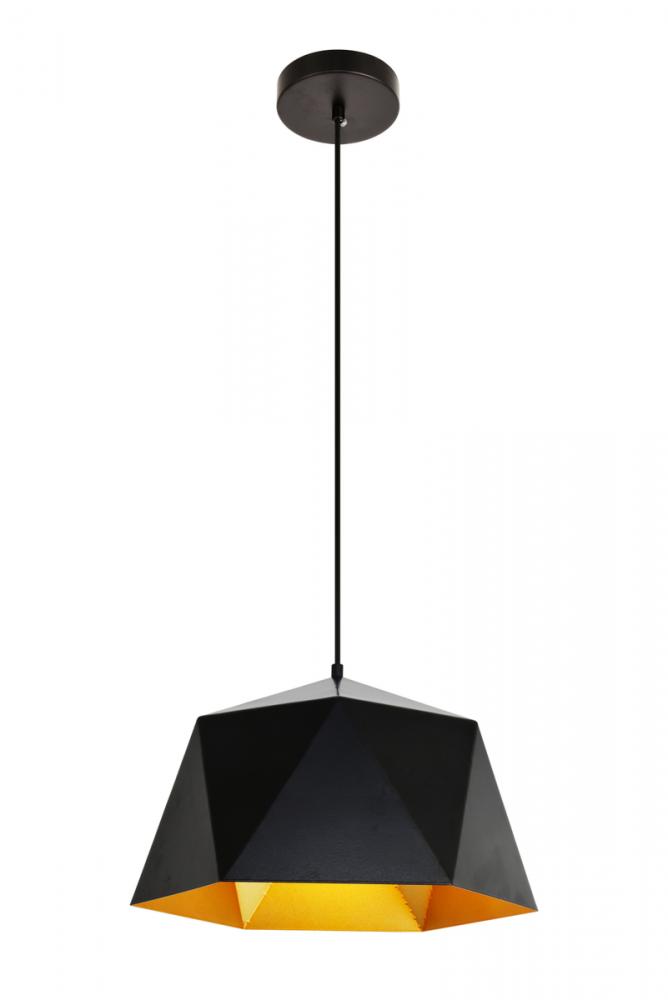 Select the Arden Collection for a transitional-style pendant lamp that celebrates the clean lines of shaded triangular shapes that form an opaque, multifaceted hexagonal dome. You can choose from either a frosted white or black exterior with a corresponding canopy. Light from a Single incandescent or LED lamp (not included) highlights the golden inside finish. These fixtures, with an adjustable height, will add a sophisticated accent to your kitchen, bar, entryway, or office.