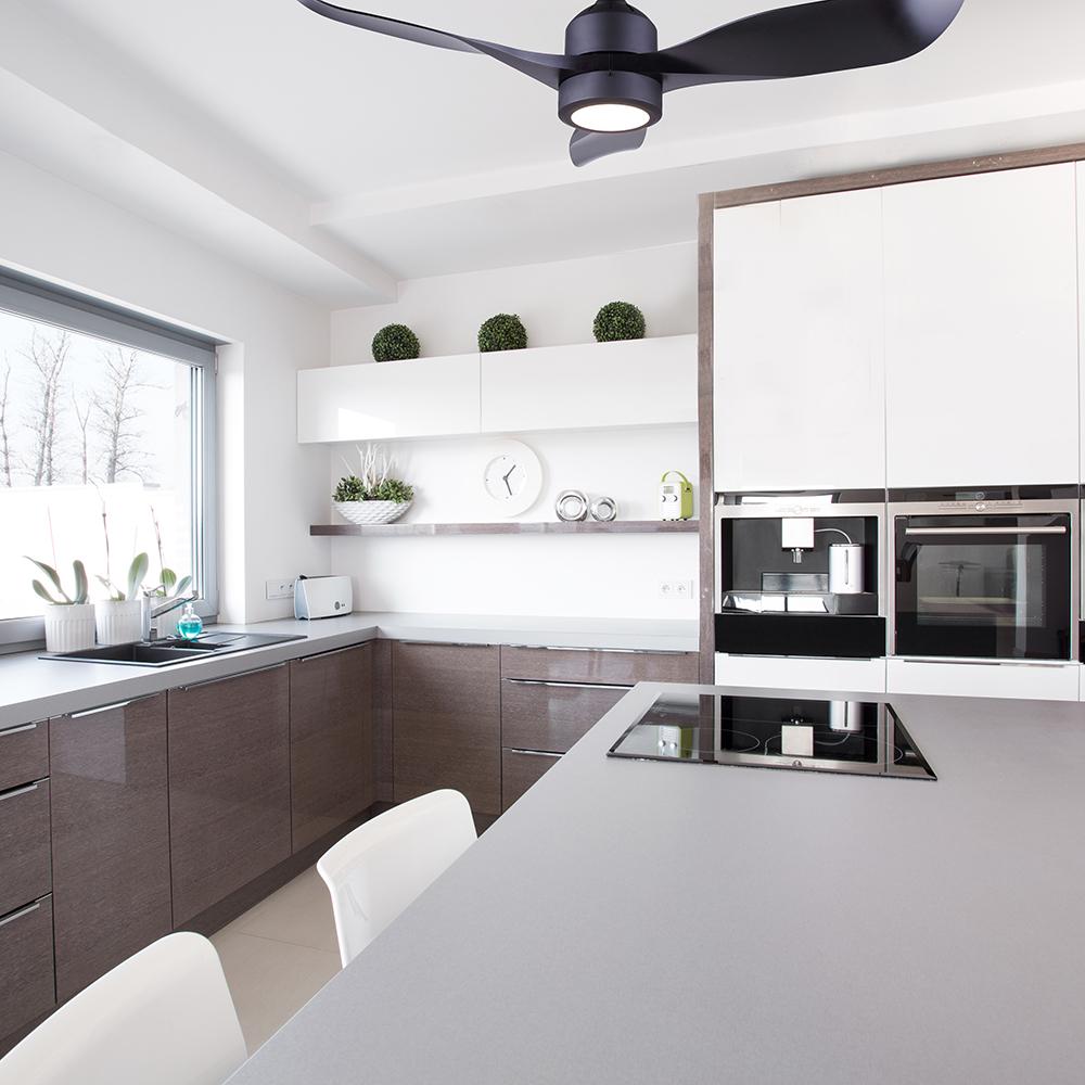 Modern Elegance: Boasts a sophisticated design with 3 sleek black ABS blades and a versatile dual mount system, perfect for adding a contemporary touch to any room.