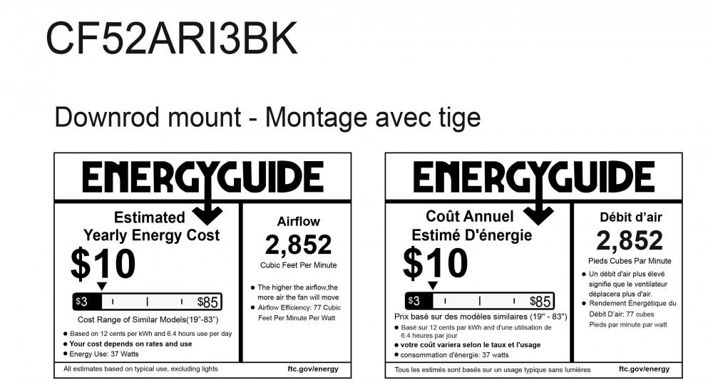 Adaptable Installation: With the ability to be mounted downrod or flush, this fan provides airflow efficiency of 81.22 CFM/Watt, making it suitable for both high and low ceilings.
