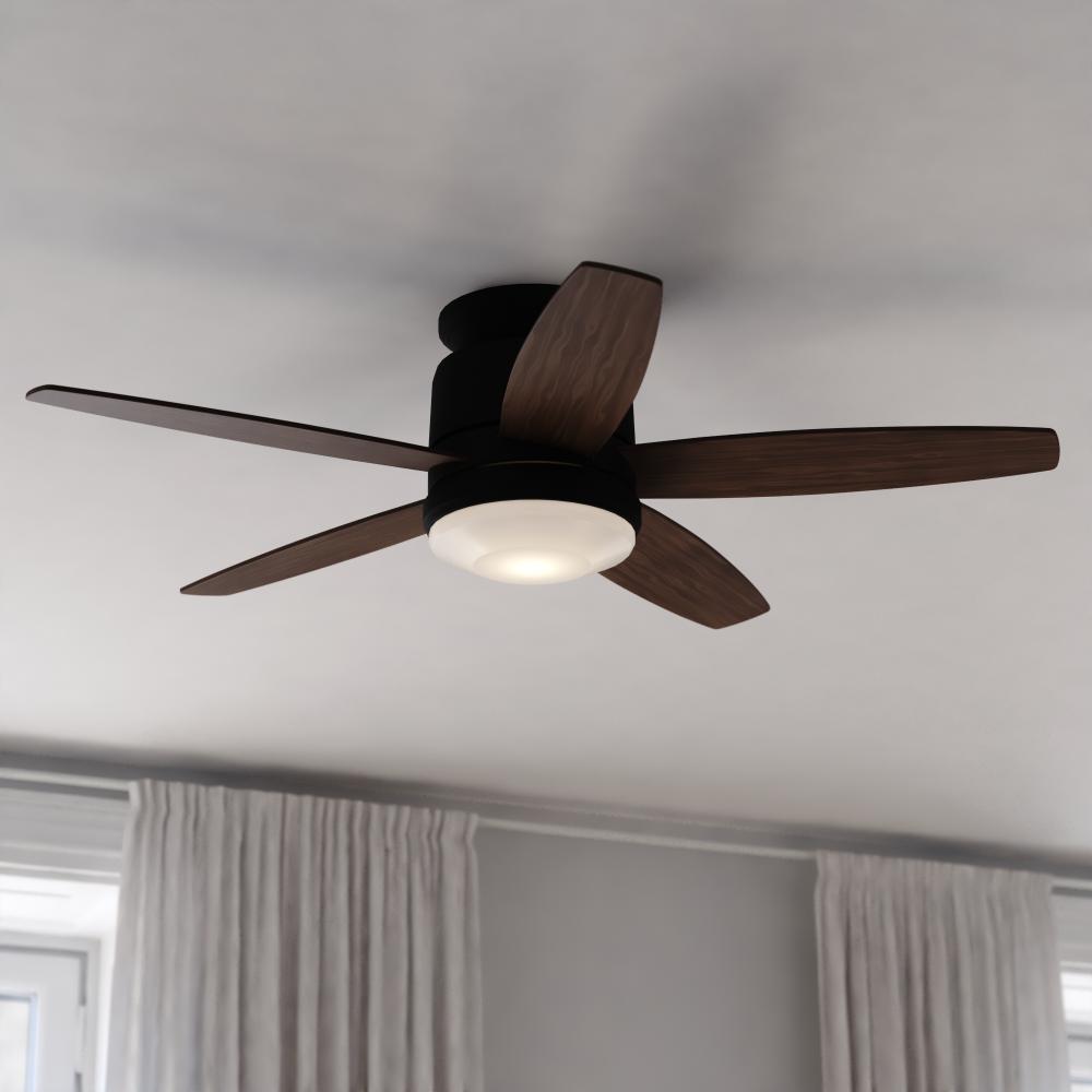 The low-profile 44-in. Armon ceiling fan adds minimalist design and maximum comfort to your modern interior. Its black housing accented by reversible black or brown hickory blades, effortlessly blends style with functionality. Enjoy customizable LED illumination and comfort settings all at your fingertips via remote control. Backed by ETL safety certifications and a lifetime limited warranty, the Armon fan is a stylish and reliable choice for your home.