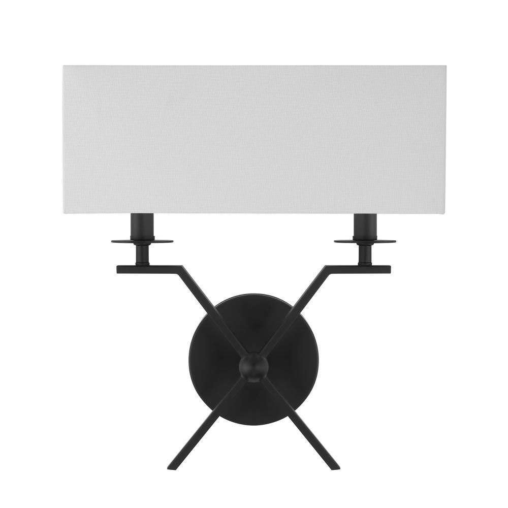 The Savoy House Arondale 2-light sconce offers up a prim and polished look that is perfect for adding style and substance to any space. A rectangular white fabric shade makes for a bold pairing with the Matte Black finish. Arondale is 15" in height, 14" in width and extends 5.75" from the wall. Uses two candelabra size bulbs of up to 60 watts per bulb. Bulbs not included. Damp area rated.