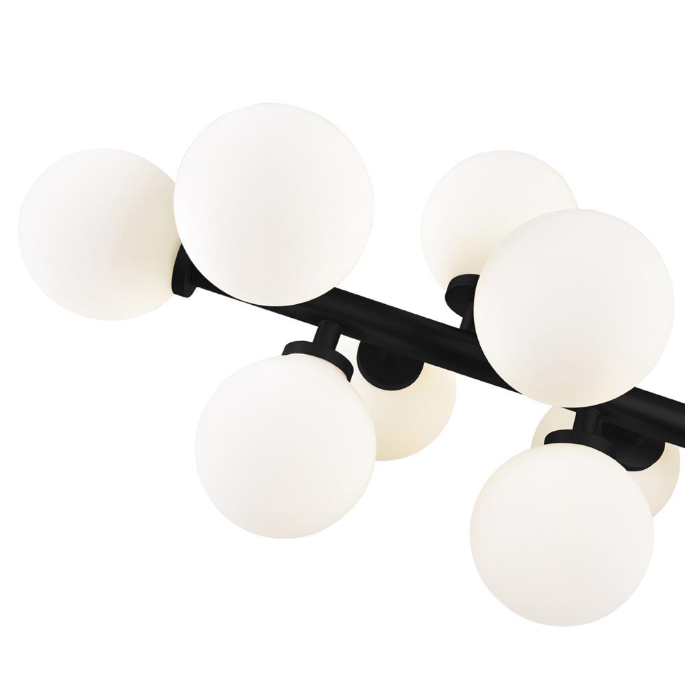 Sculptural Starfield Effect: Sixteen frosted glass globes arranged along a black rod create a modern constellation, blending artistry with ambient task lighting