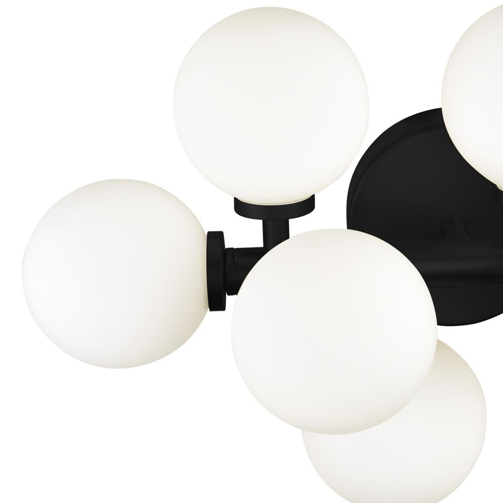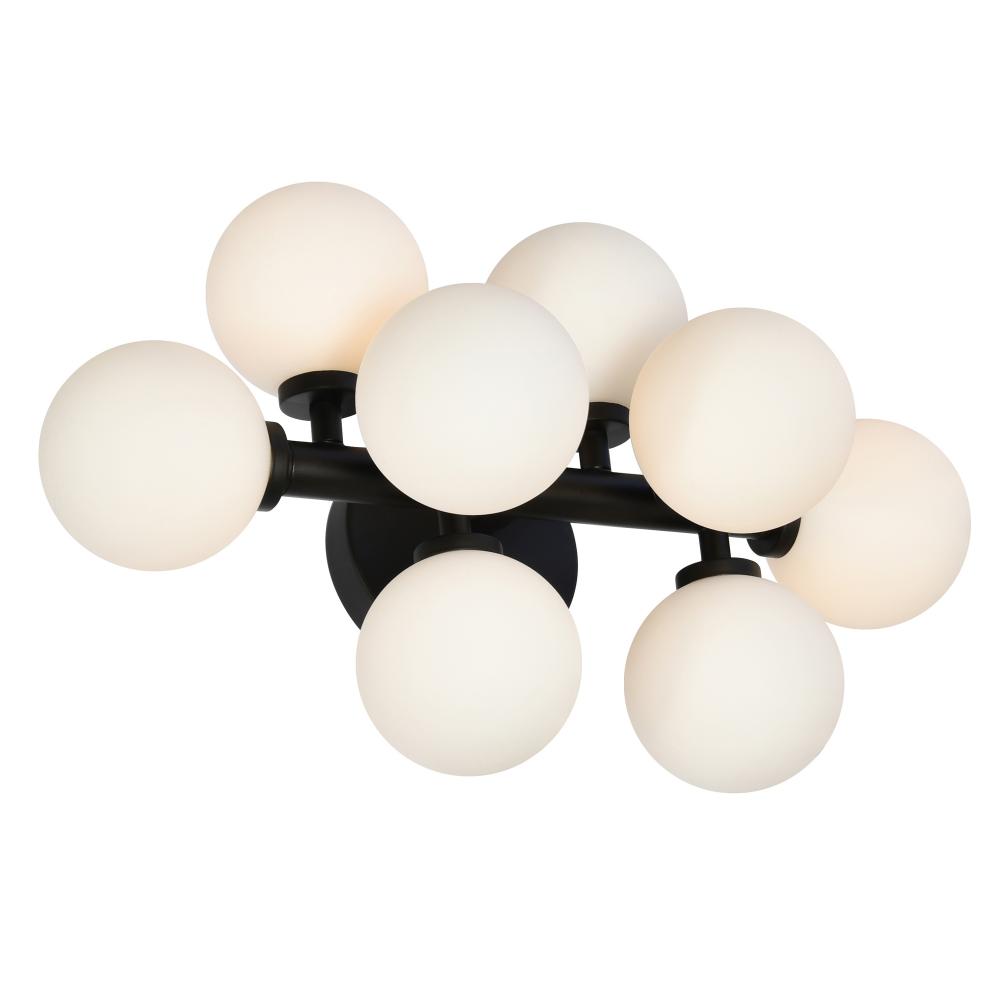 Elevate Your Walls with Modern Shadowplay The Arya 8-Light Black Sconce merges **industrial edge** with residential warmth. Its matte black frame and frosted spheres cast a soft, gallery-worthy glowperfect for spaces craving contrast and character. Why It Works Where You Live: Space-Smart Design 18" width fits snugly beside bathroom mirrors (30-36" apart) or above nightstands. Glare-Free Ambiance Frosted glass diffuses light evenly, ideal for makeup vanities or bedtime reading. Hardwired Reliability Lasting performance in humid bathrooms. Perfect For: Urban lofts needing texture, farmhouse bedrooms craving contrast, or mid-century hallways demanding function. Install 60-66" above floors for optimal impact.