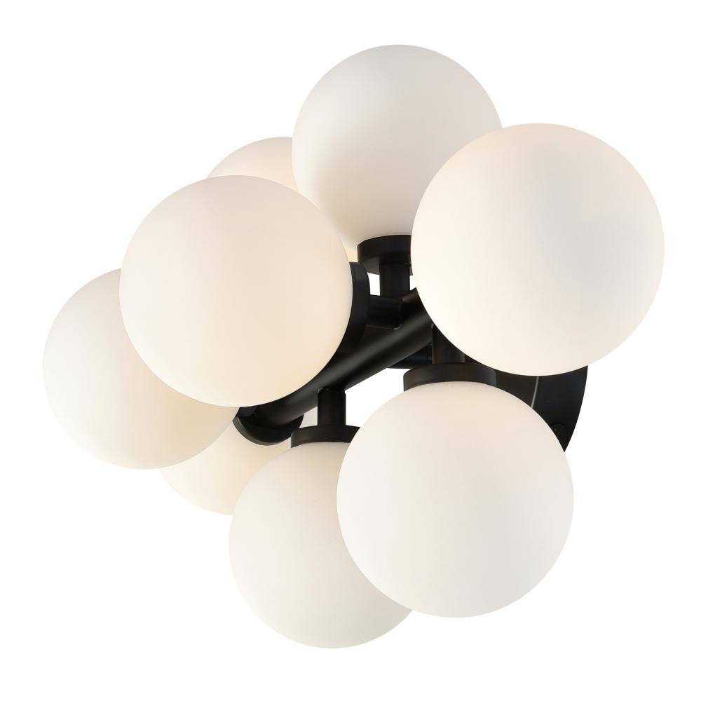 Instant Modern Edge: Eight frosted glass spheres on a black metal arm transform dull walls into sculptural light displays with ambient glow