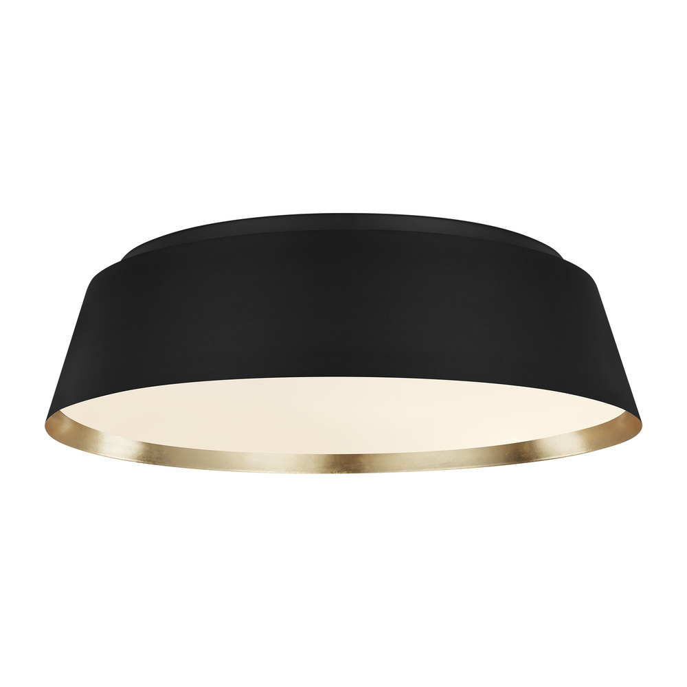 The Asher flush mount from Ellen DeGeneres is the perfect way to achieve your desired fashion or functional needs in your home. Asher is contemporary with time-honored appeal in a low profile, yet large-scale silhouette that exudes understated elegance. Available in either a Midnight Black or Matte White exterior finish, both versions utilize an artisanal, hand-applied treatment of real gold leaf that lines the interior of the shade while a silk screen glass diffuser softens the illumination.