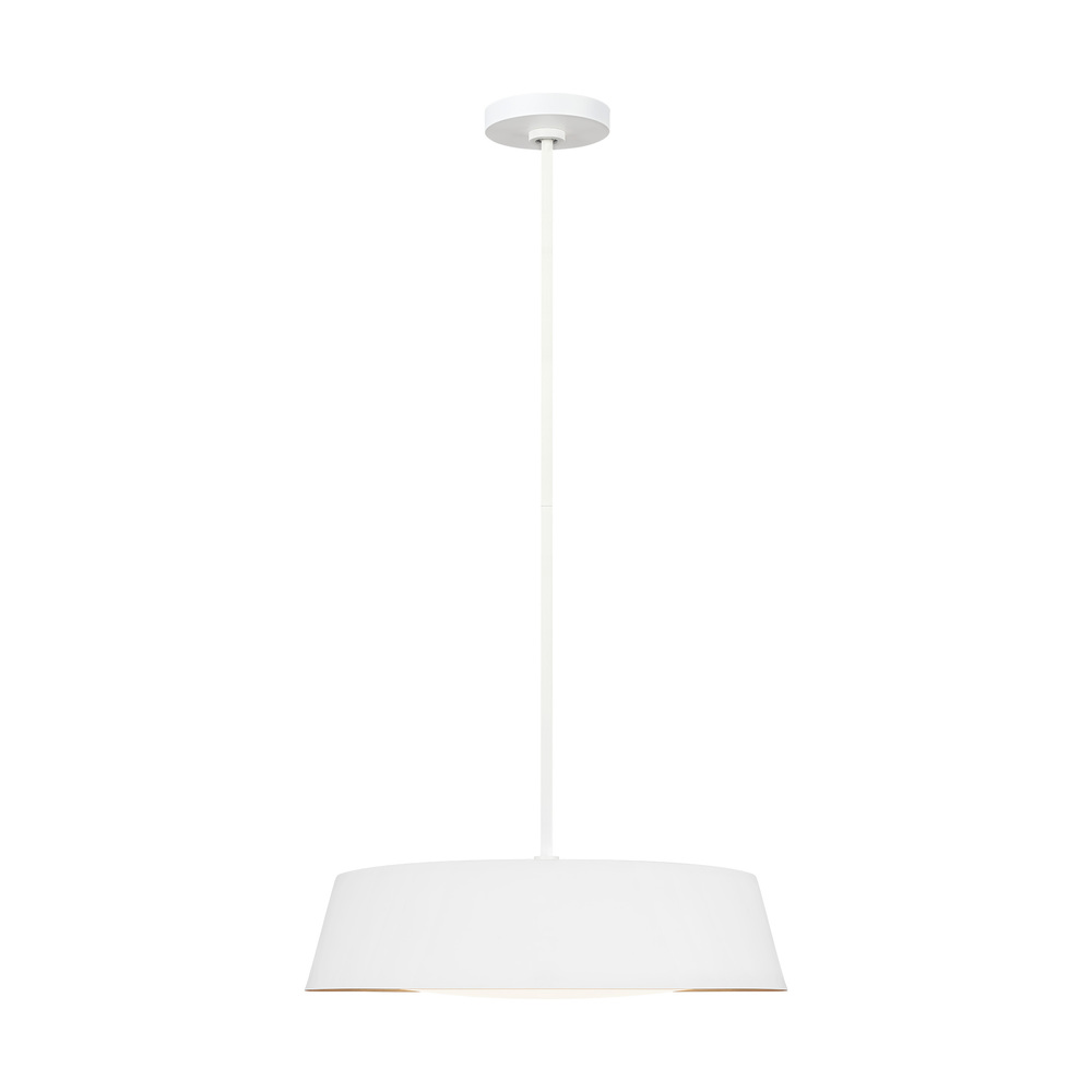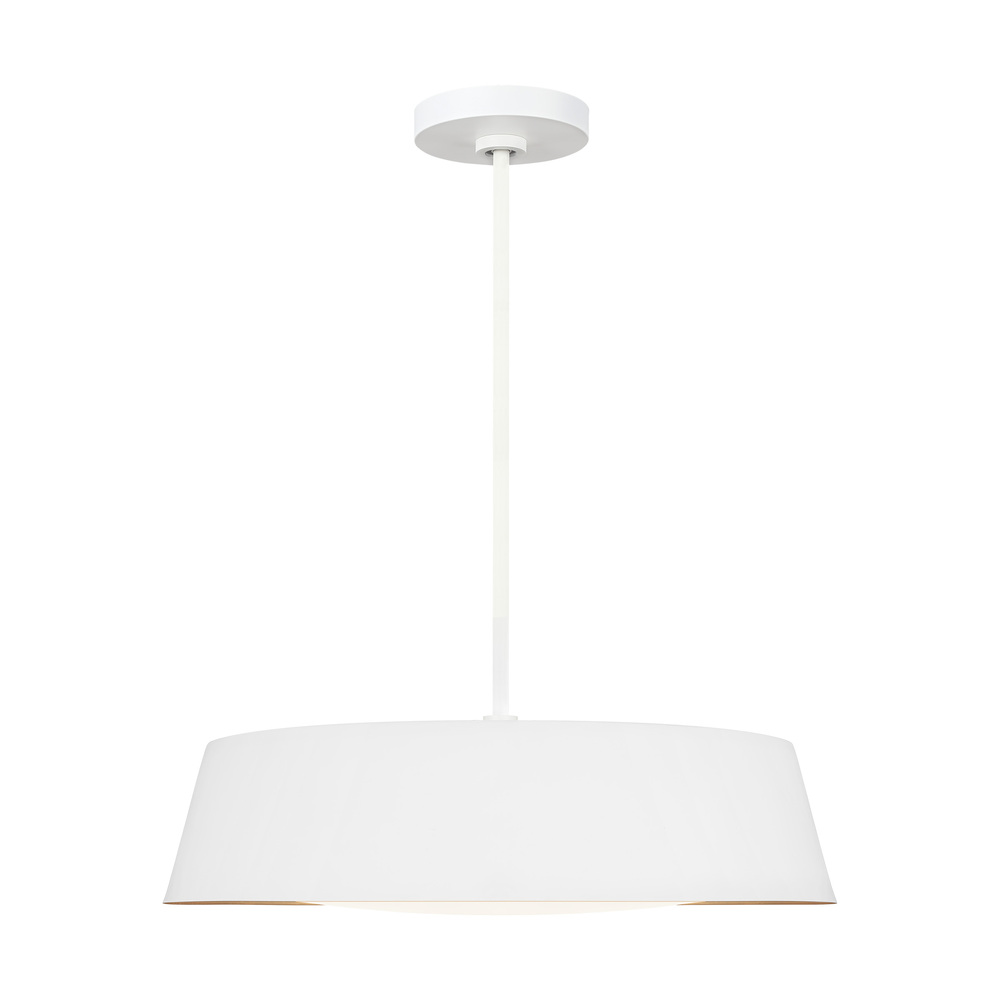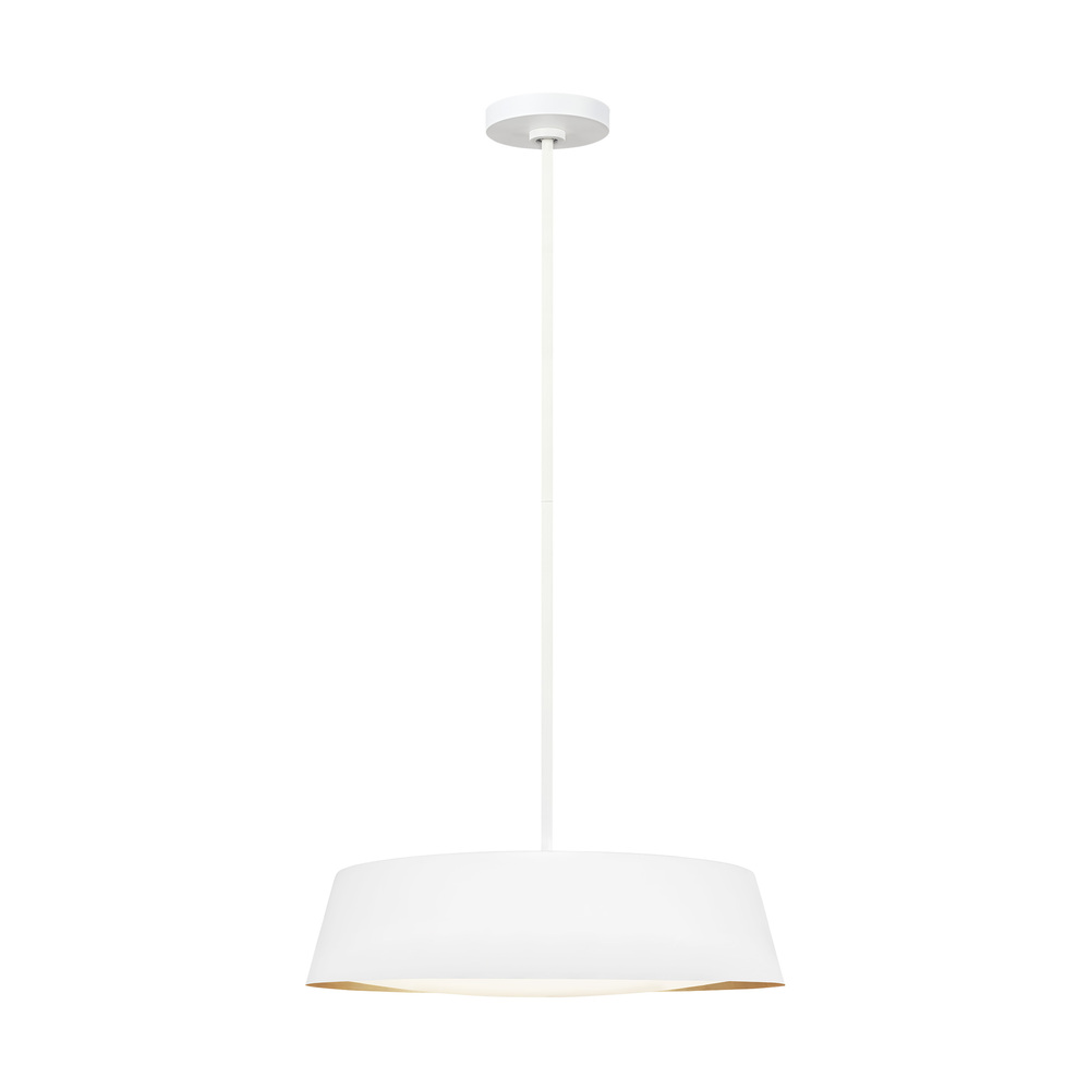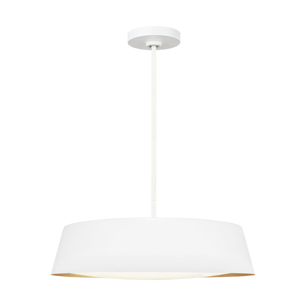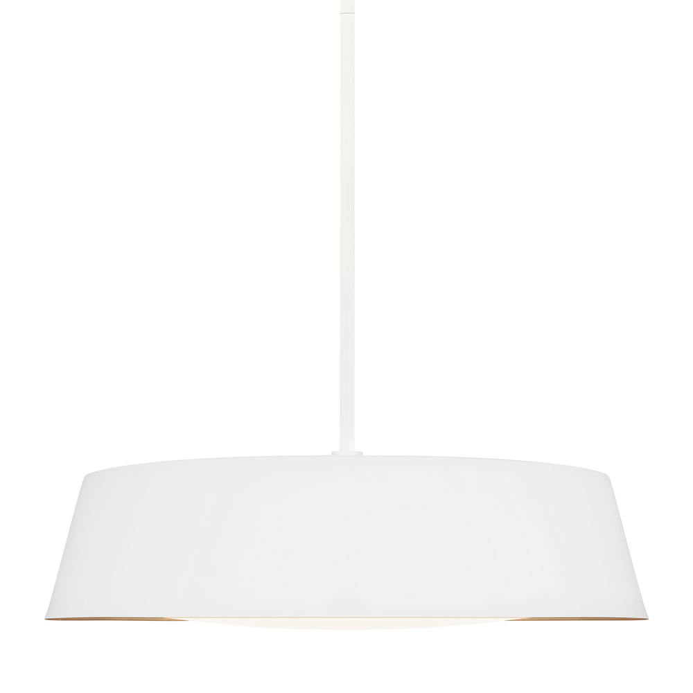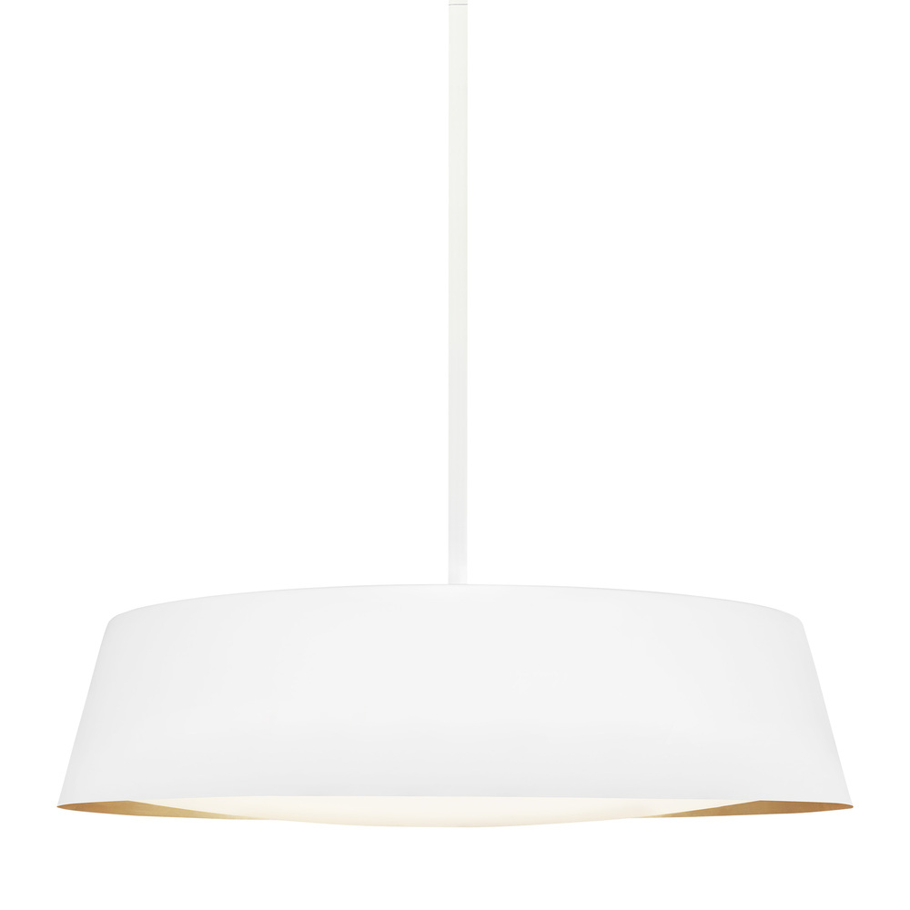 The Asher five-light indoor pendant in matte white supplies ample lighting for your daily needs while adding a layer of today's style to your home's décor. The Asher is contemporary with time-honored appeal in a low profile yet large-scale silhouette that exudes understated elegance. Available in either a Midnight Black or Matte White exterior finish, both versions utilize an artisanal, hand-applied treatment of real gold leaf that lines the shade's interior. At the same time, a silk screen glass diffuser softens the illumination.