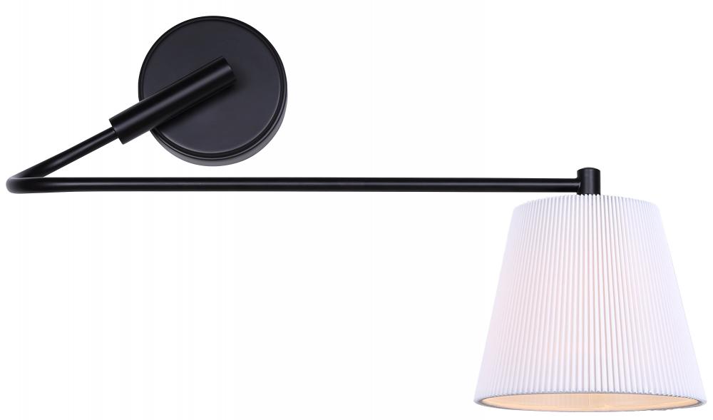 ASPEN, IWF1201A01BK, 1 Lt Wall Fixture, White Ribbed Fabric Shade, 60W Type A, 22inch W x 13.25inch H x 9inch, Easy Connect Included