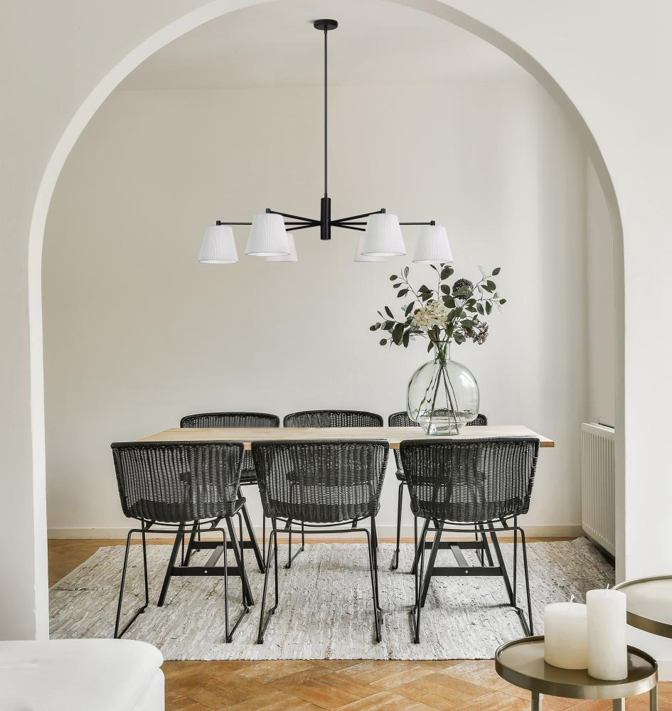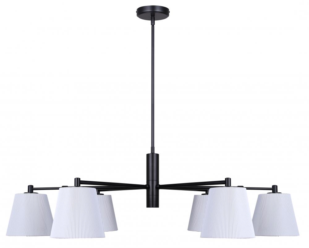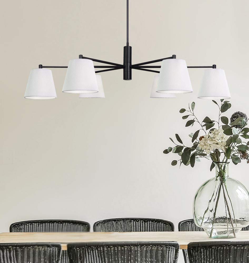 ASPEN, ICH1201A06BK, 6 Lt Rod Chandelier, White Ribbed Fabric Shade, 60W Type A, 35.25 - 56.25inch W x 15.25 - 63.5inch H x 26inch D